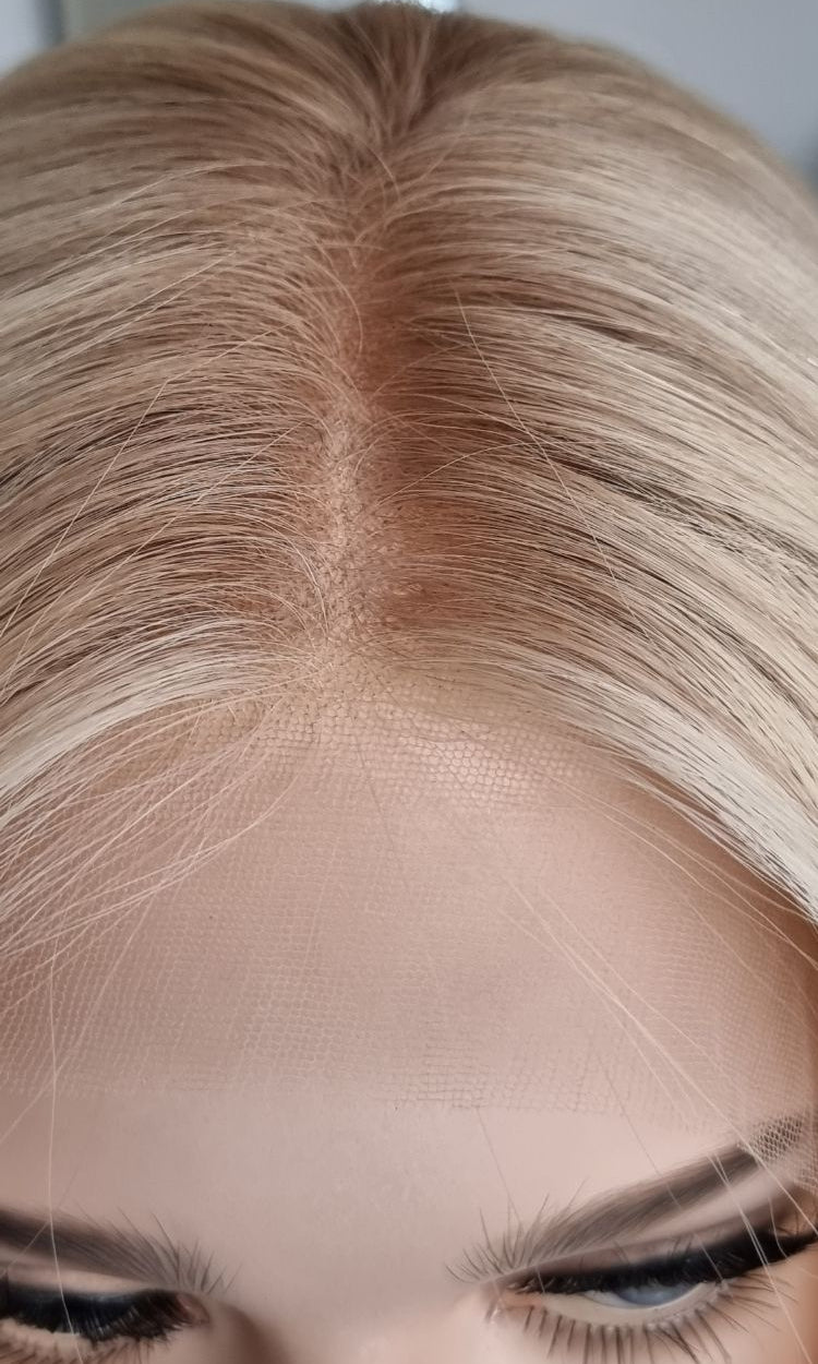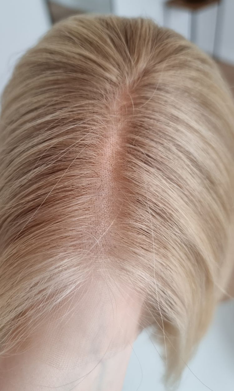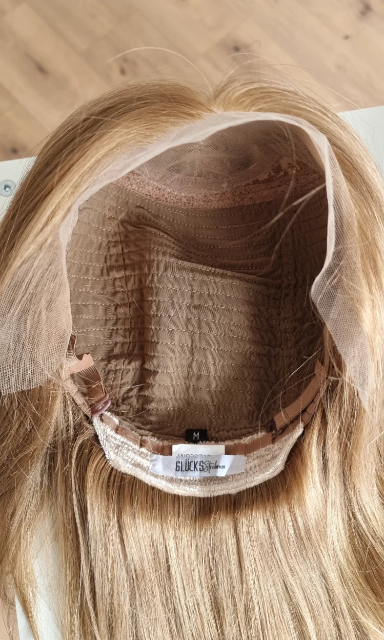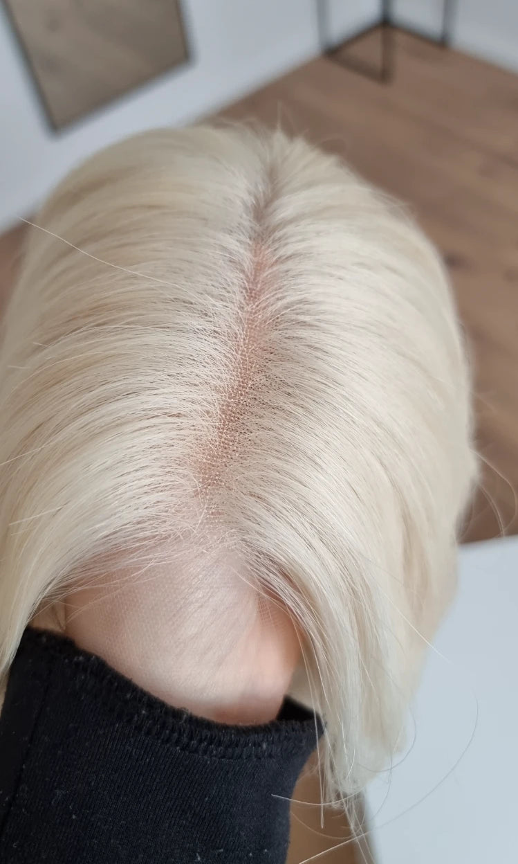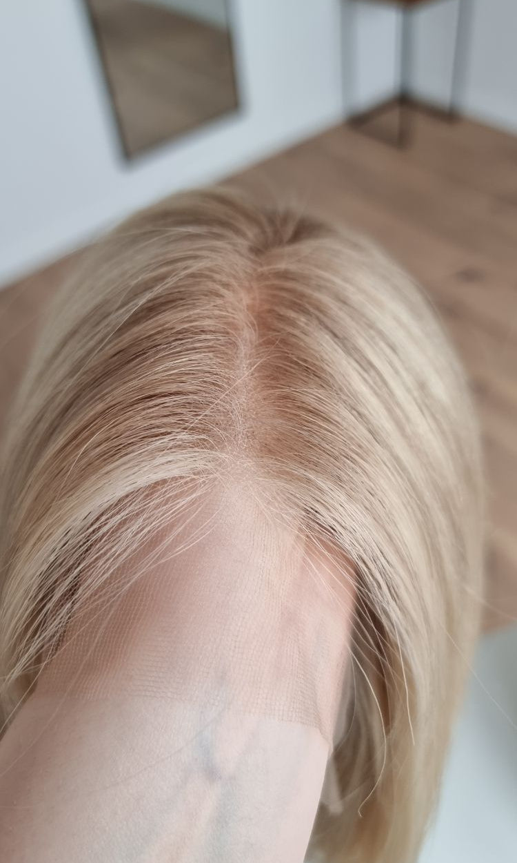 Im oberen Bereich befindet sich das sogenannte Lacetop: Hier werden die Haare ebenfalls einzeln eingeknüpft, was einen realistischen Scheitel und eine natürliche Haarbewegung ermöglicht.