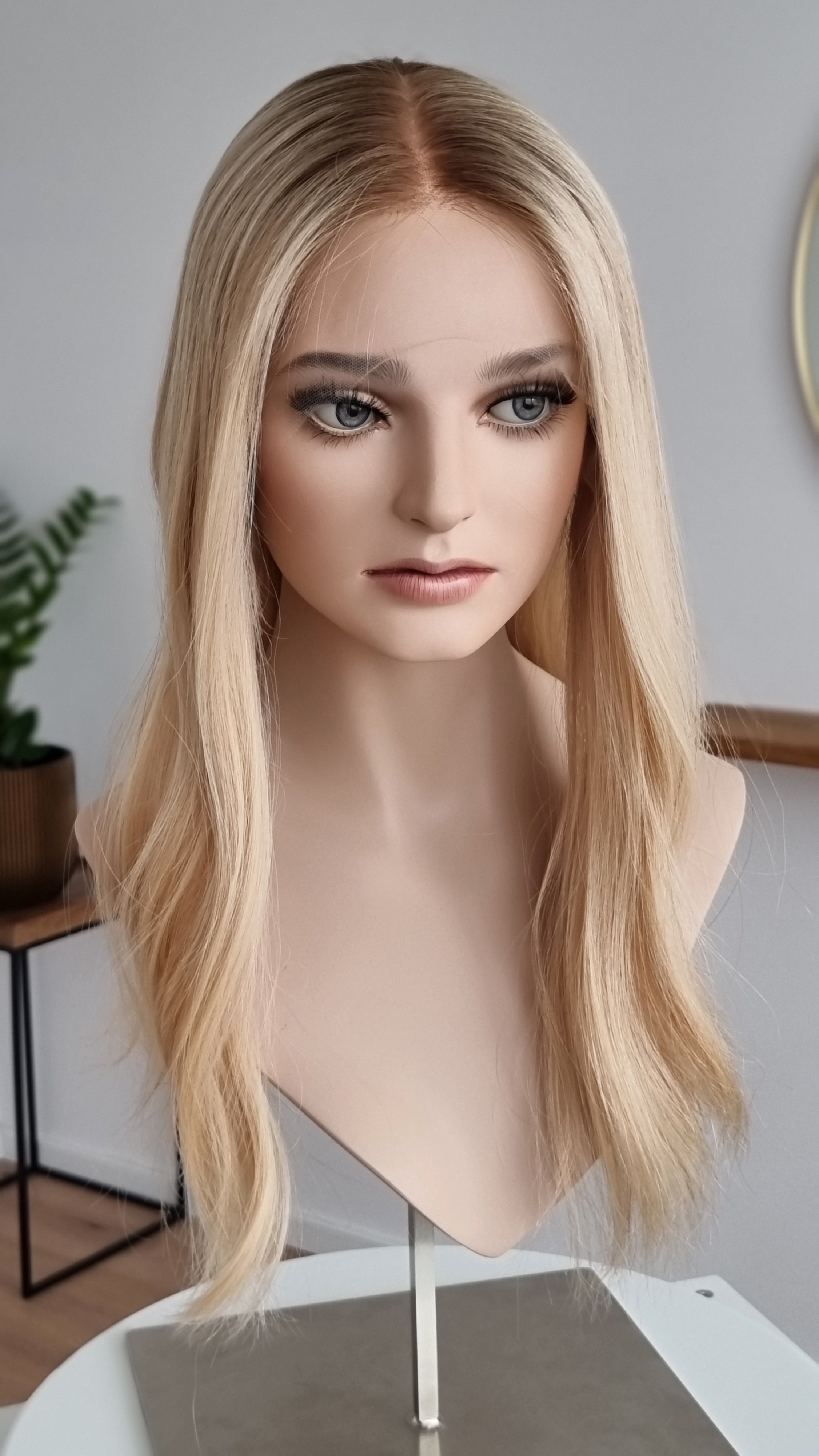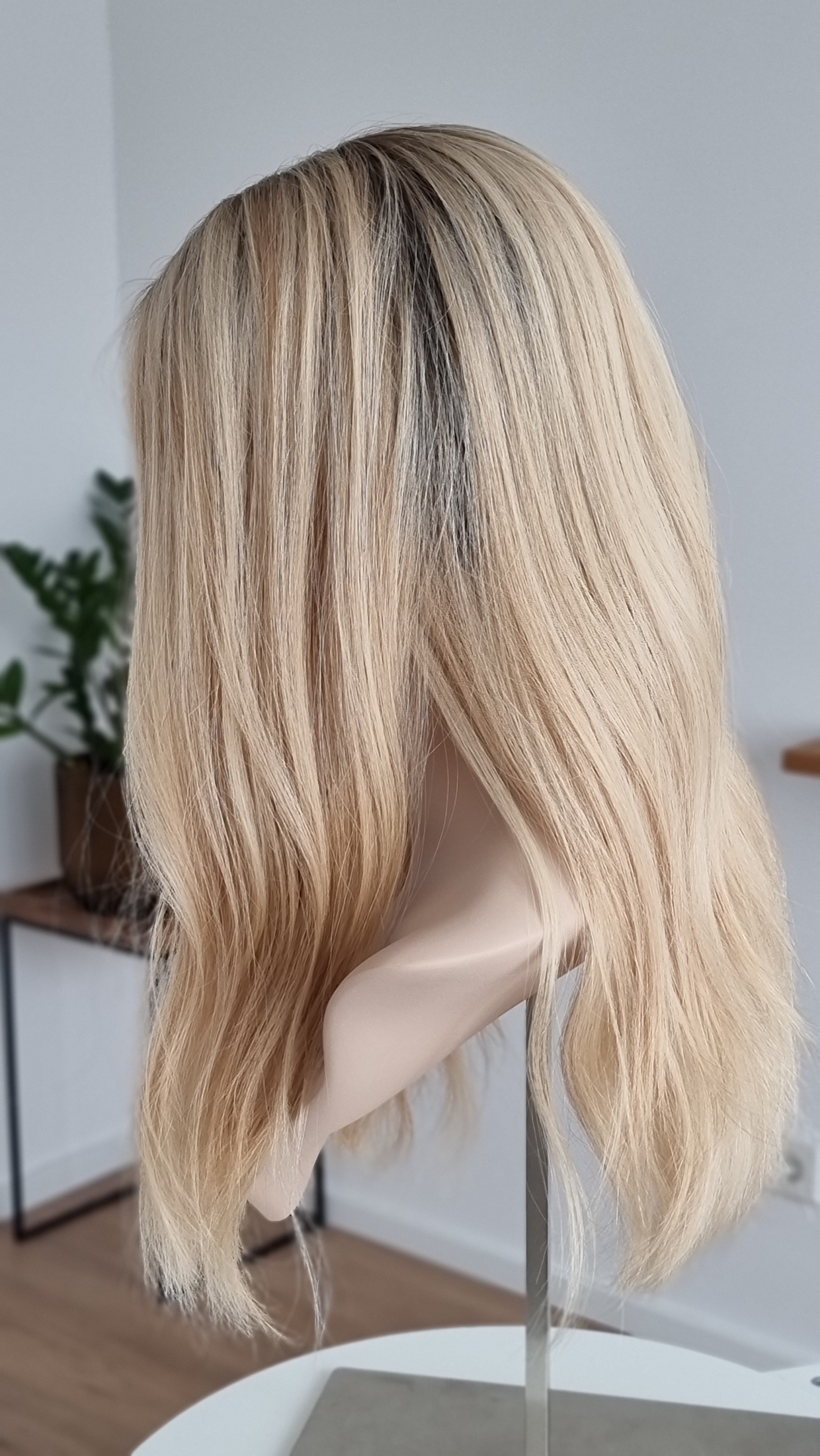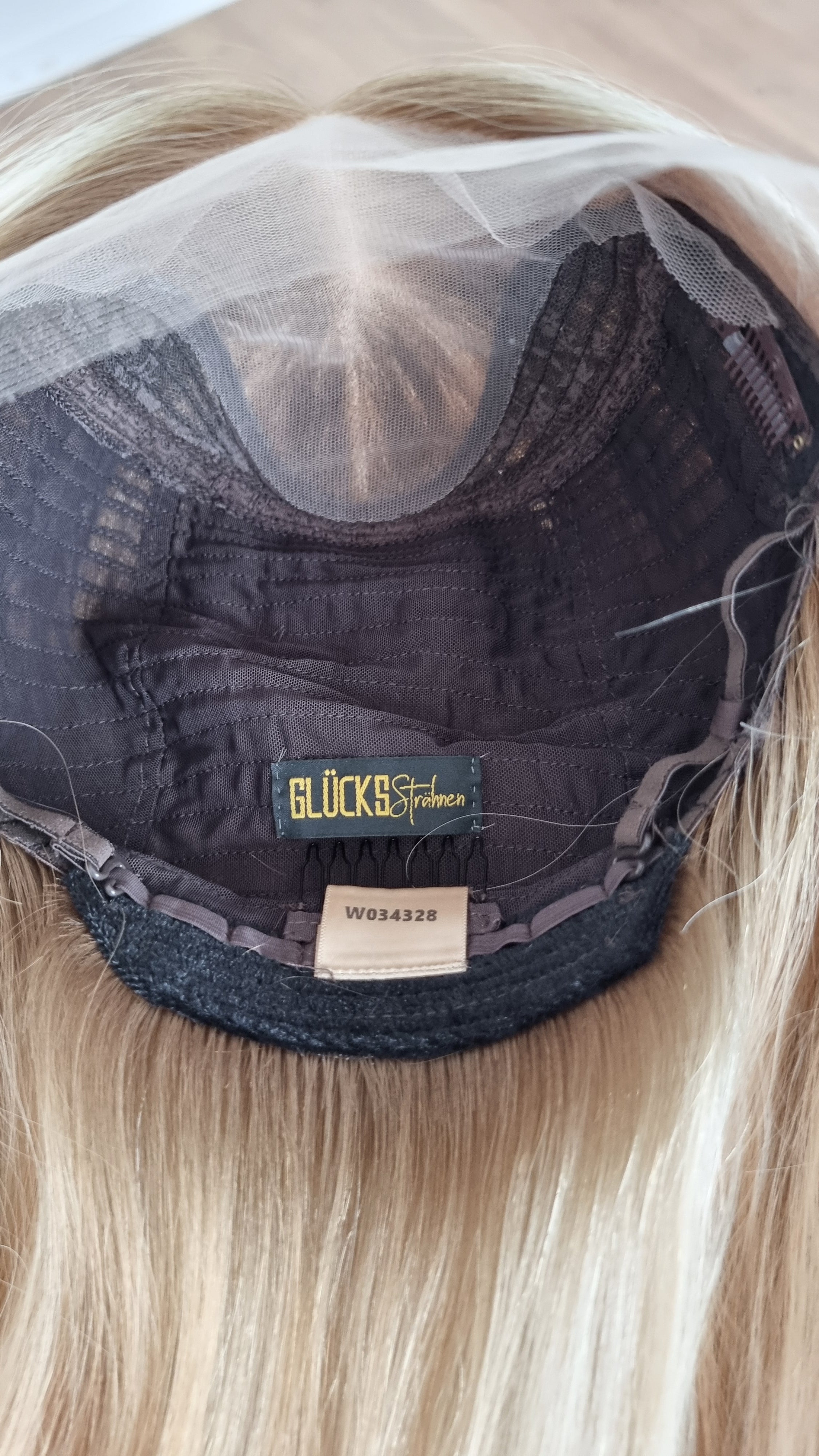 Die Knoten sind gebleicht, können allerdings nur bis zu einem gewissen Punkt blondiert werden, ohne die Integrität der Perücke zu gefährden. Da Haar ein Naturprodukt ist und somit natürlichen Schwankungen unterliegt, lassen sich manche Knoten besser aufhellen als andere. Sollten die Knoten nicht ganz aufgehellt werden können, kannst du sie mit hellem Puder oder unserem Perückenstift kaschieren.