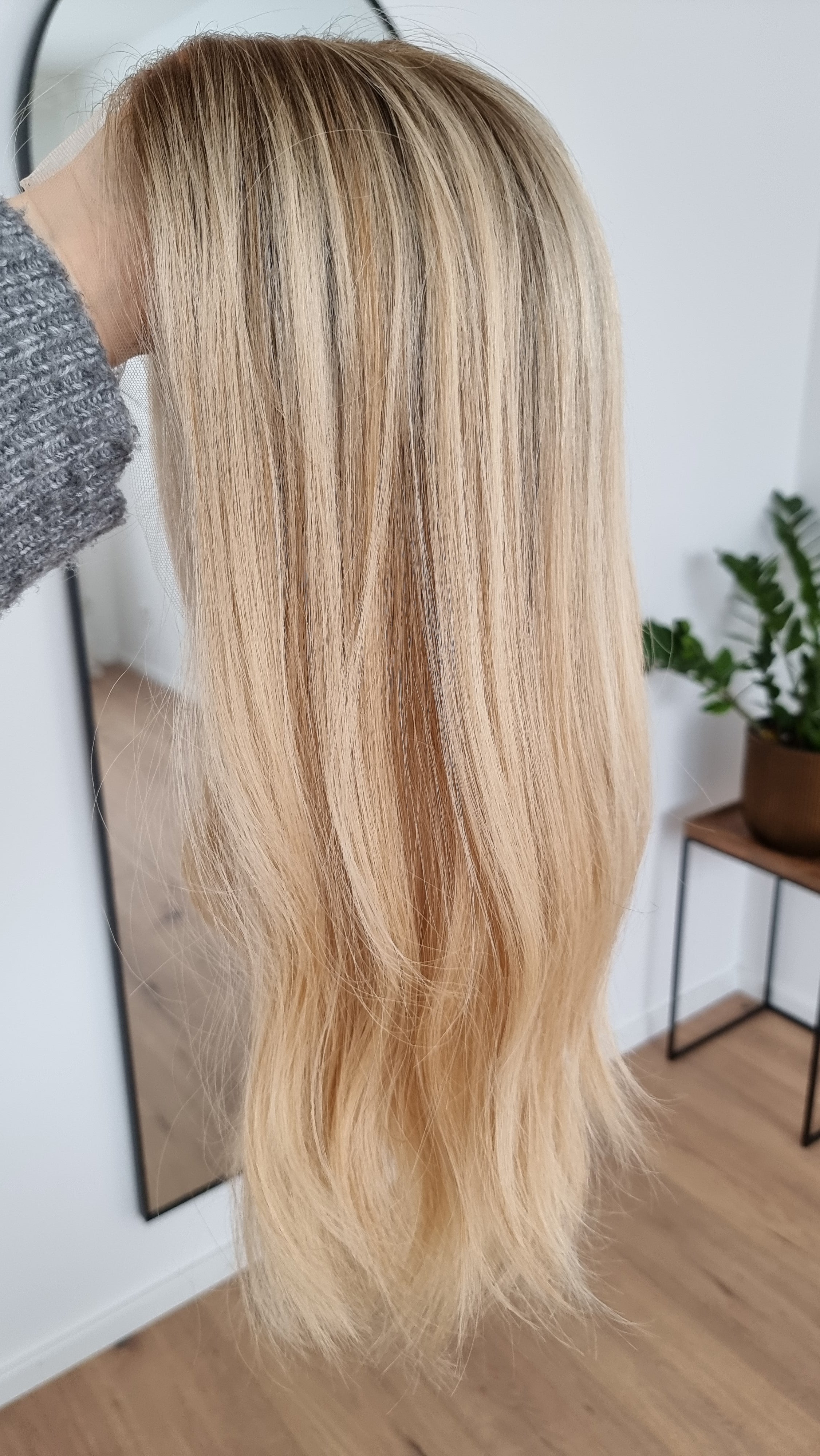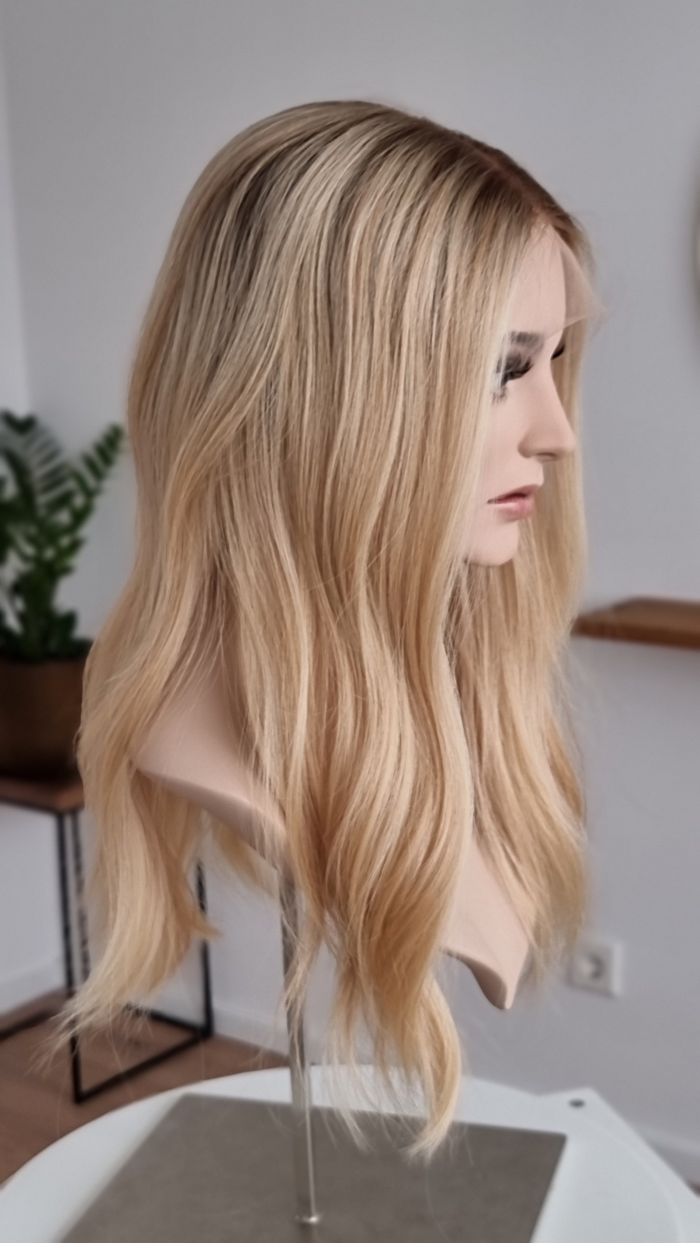- Farbe Ansatz Dunkelblond, Längen hellblond mit Lowlights