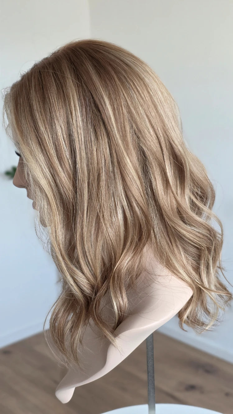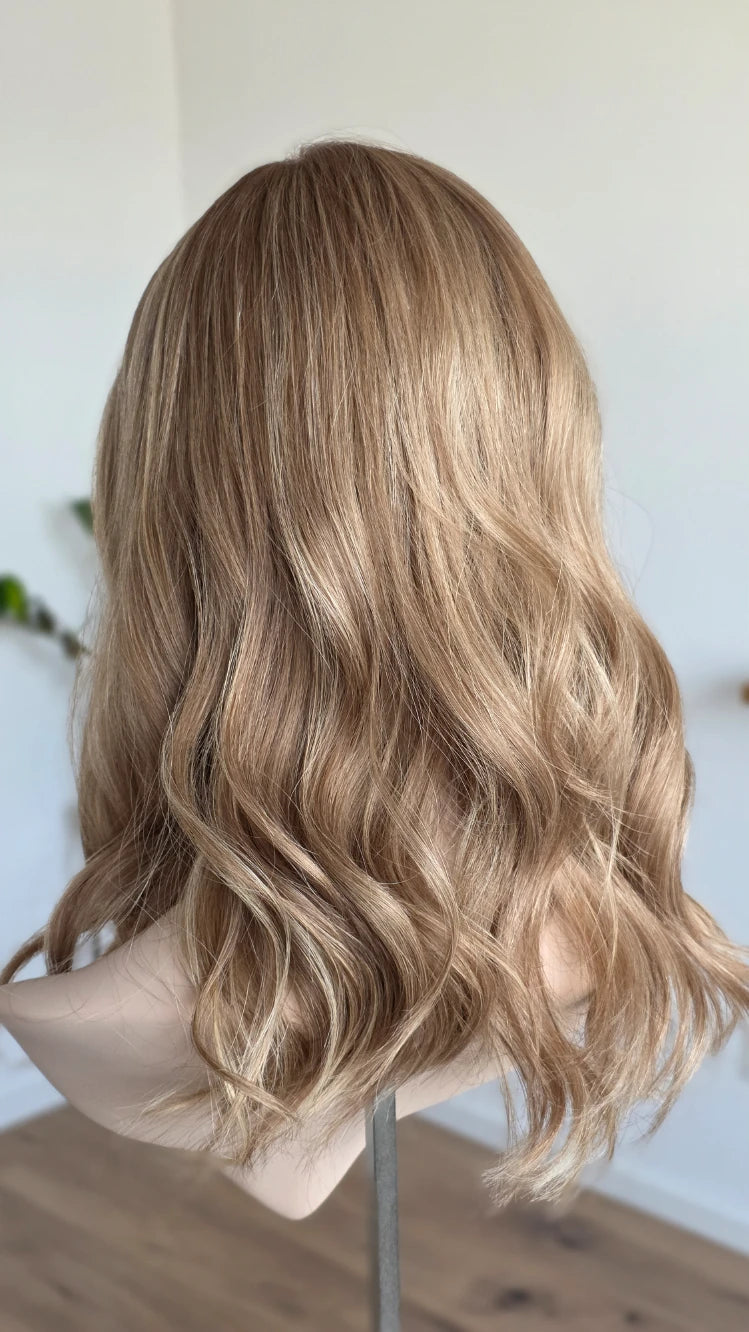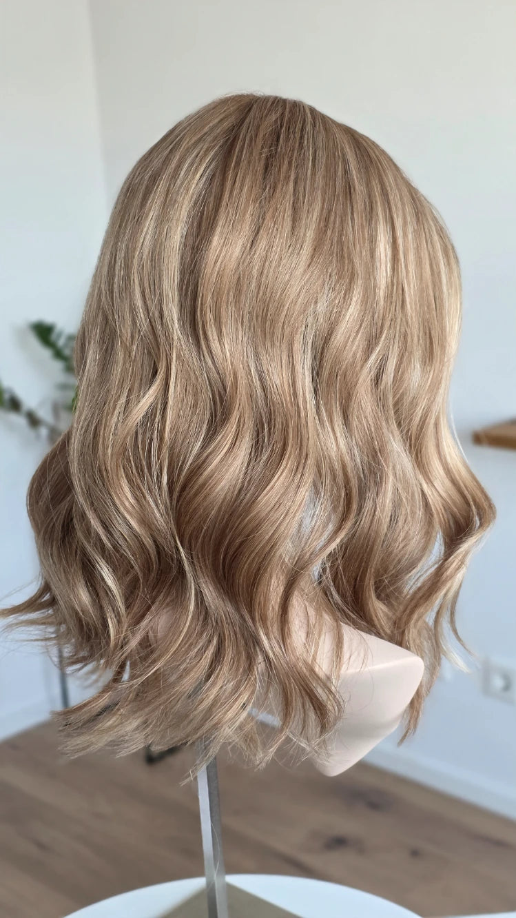 • Farbe neutrales Dunkelblond mit hellblonden Highlights