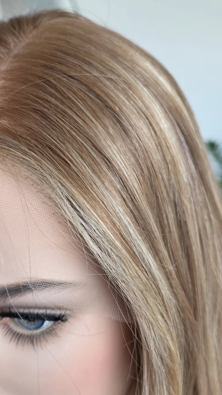 Die Knoten sind gebleicht, können allerdings nur bis zu einem gewissen Punkt blondiert werden, ohne die Integrität der Perücke zu gefährden. Da Haar ein Naturprodukt ist und somit natürlichen Schwankungen unterliegt, lassen sich manche Knoten besser aufhellen als andere. Sollten die Knoten nicht ganz aufgehellt werden können, kannst du sie mit hellem Puder oder unserem Perückenstift kaschieren.