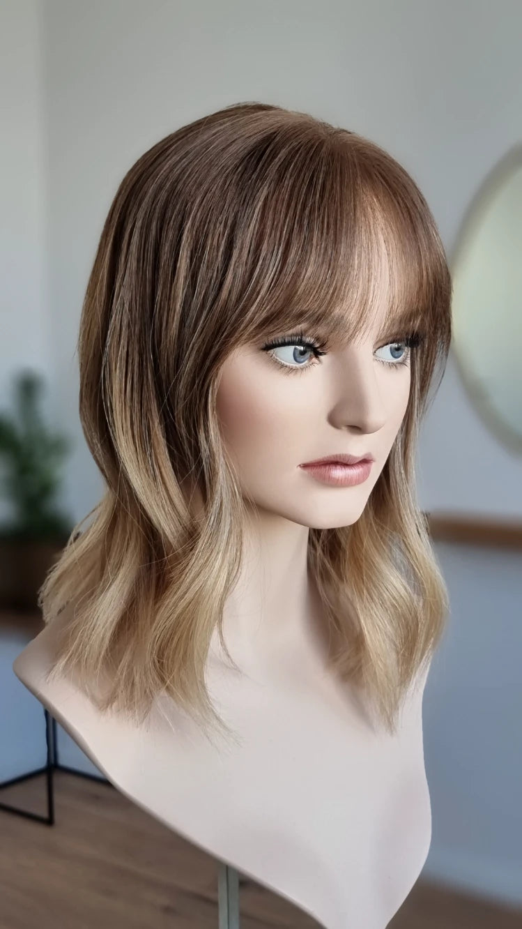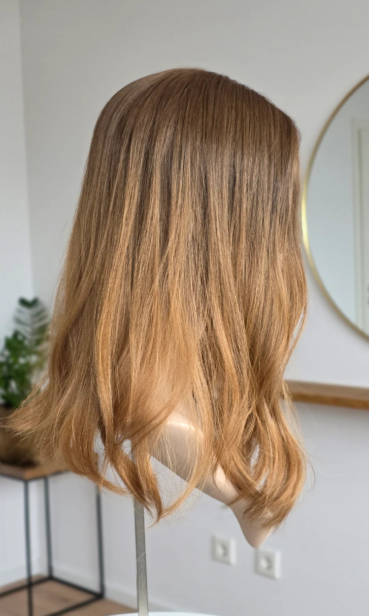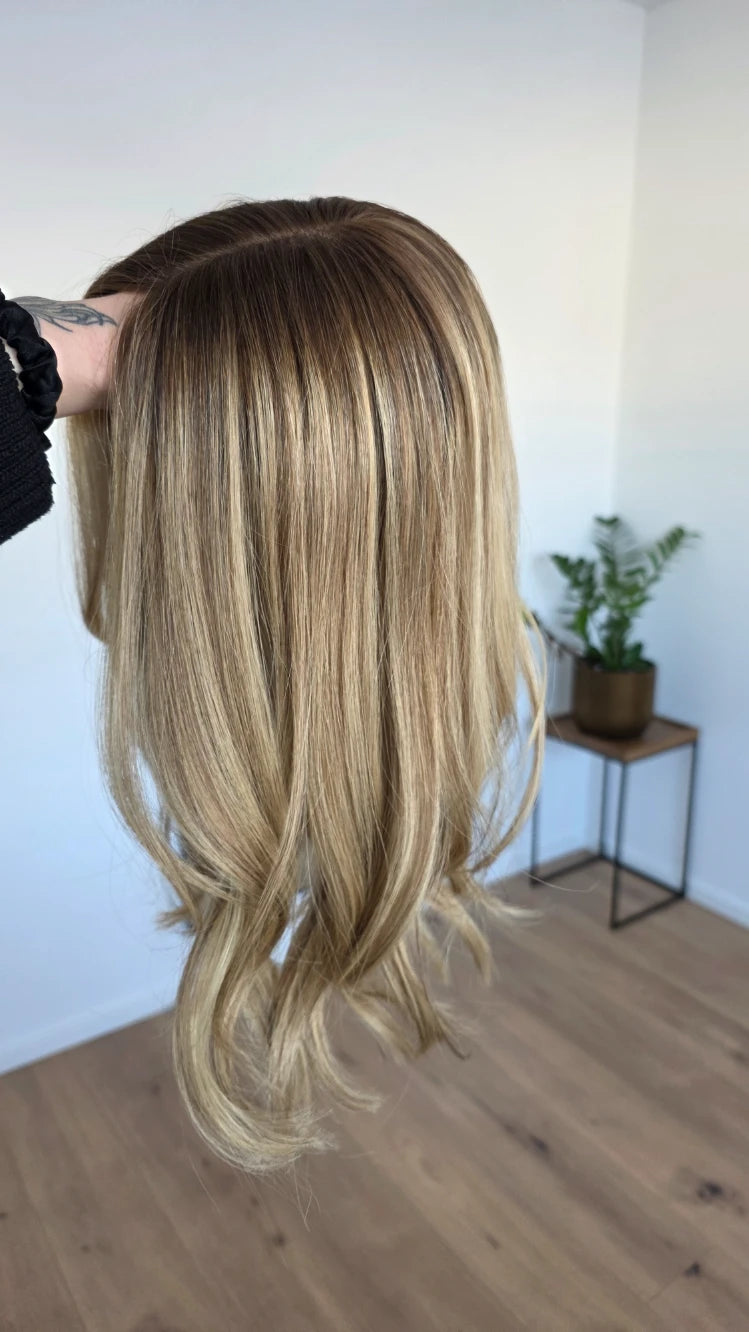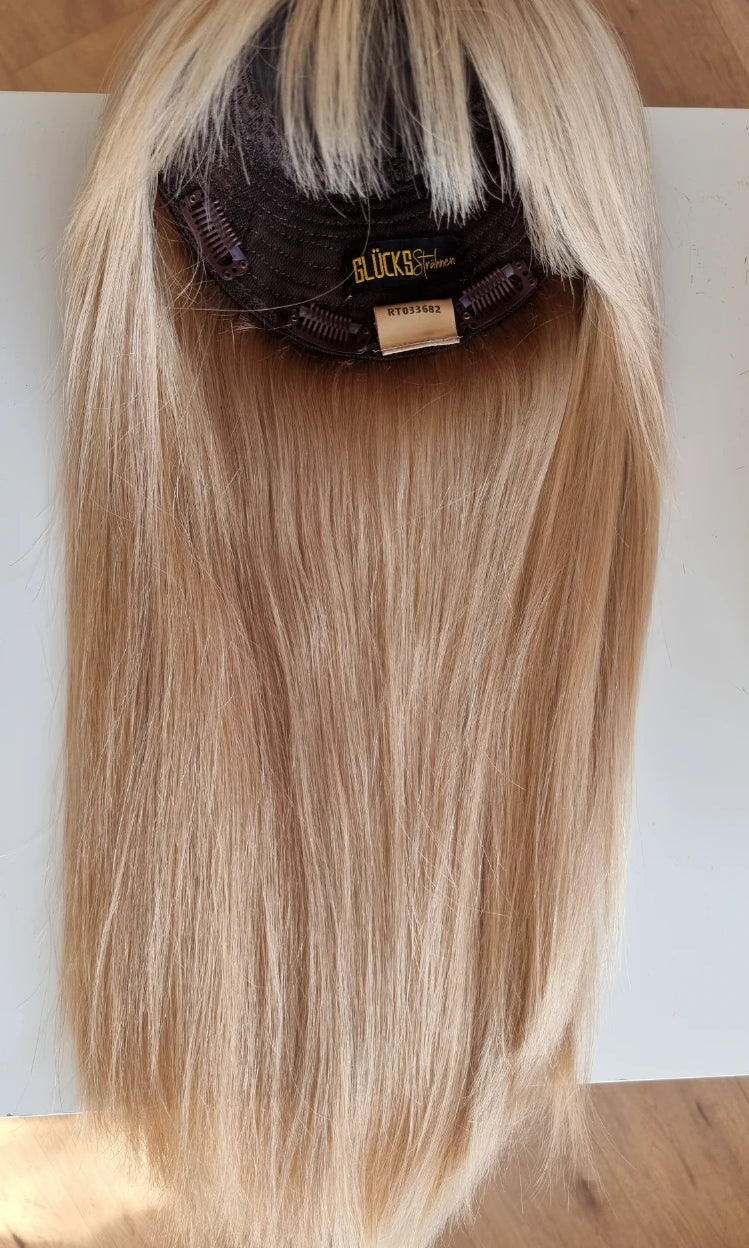 Bei Toppern ist ein genaues Farbmatch zu deinen Haaren wichtig, damit ein realistischer Look erzielt werden kann. Der Topper sollte also möglichst deinen Farbton treffen, das heißt wenn du Blond bist könnte eine Ice Ice Baby, Honey Swirl oder Goldstück zu dir passen.