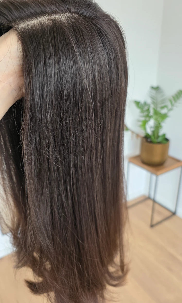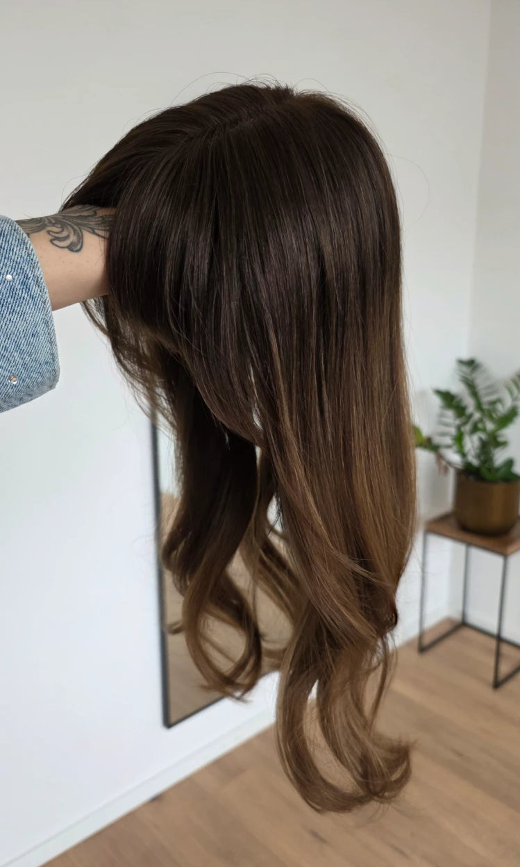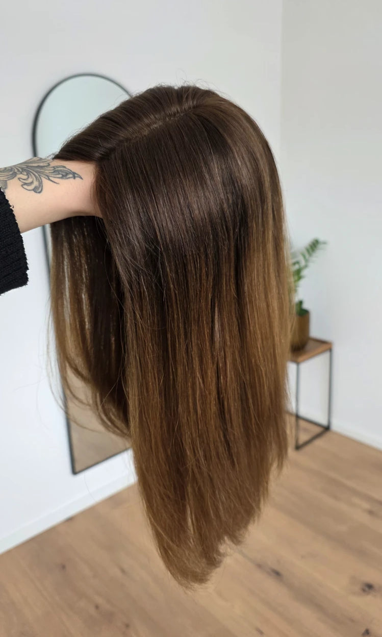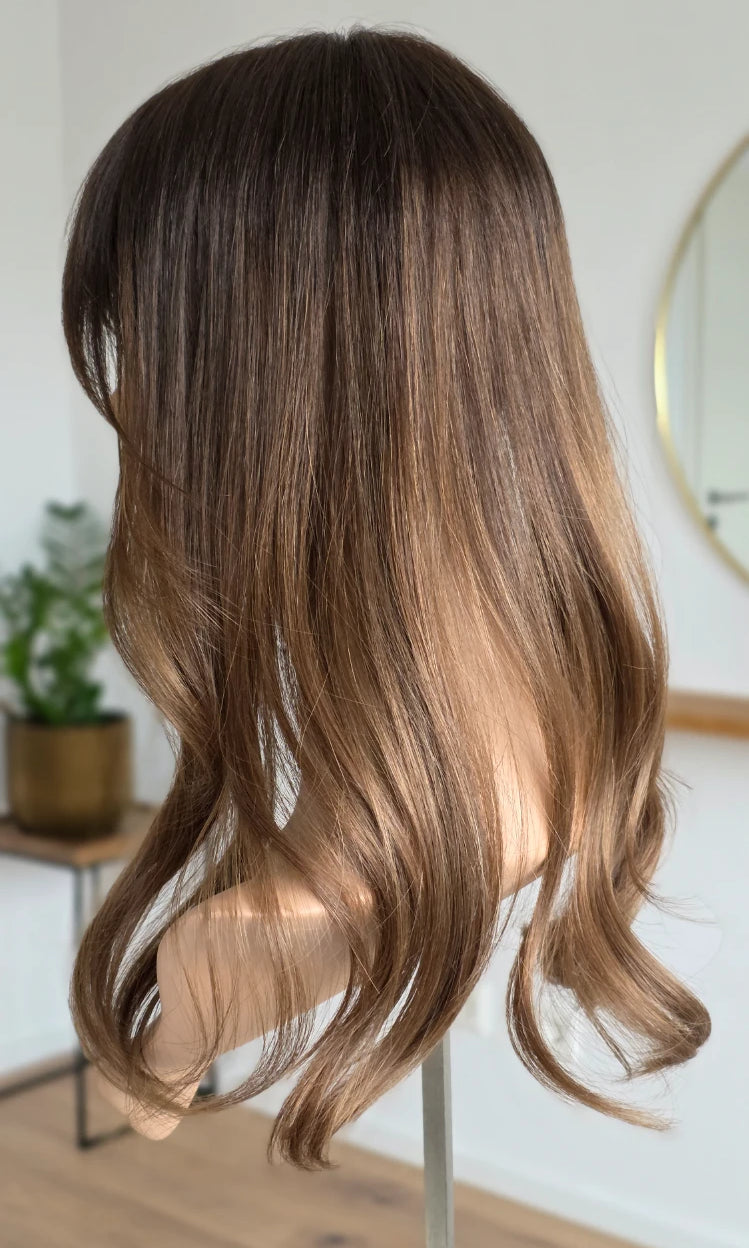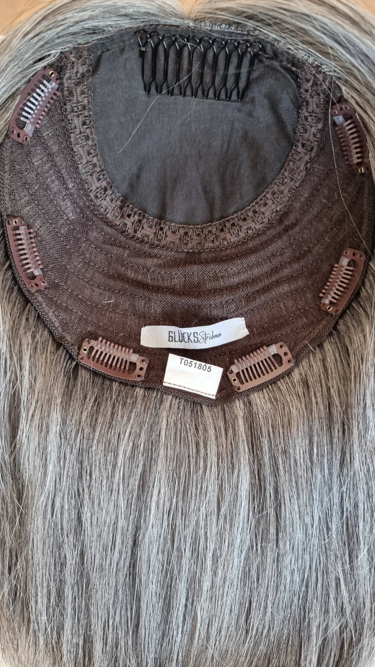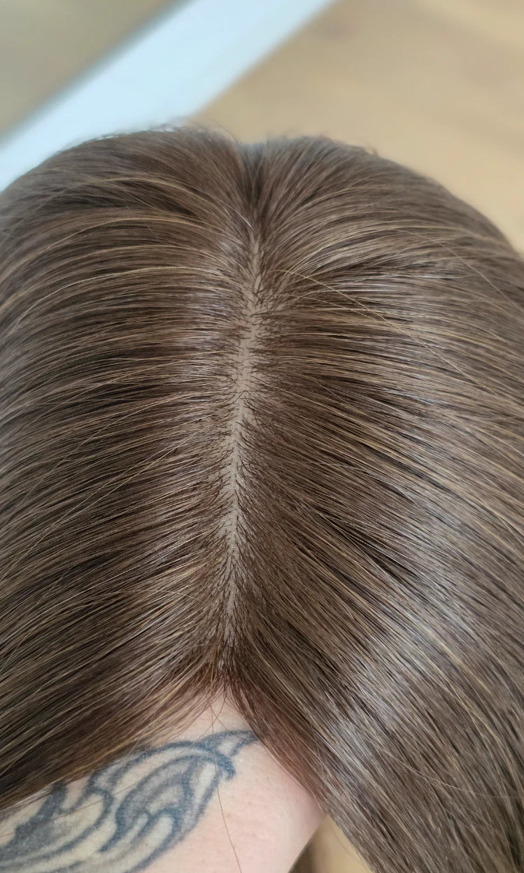 Ein Silk-Topper ist ein hochwertiges Haarteil, das den Bereich am Oberkopf abdeckt – mit dem Ziel, Volumen, Dichte und ein absolut natürliches Erscheinungsbild zu schaffen. Der Name „Silk“ bezieht sich dabei auf die spezielle Seidenlage im Topper, die die Haaransätze wie aus der Kopfhaut wachsend erscheinen lässt.