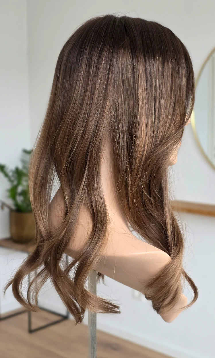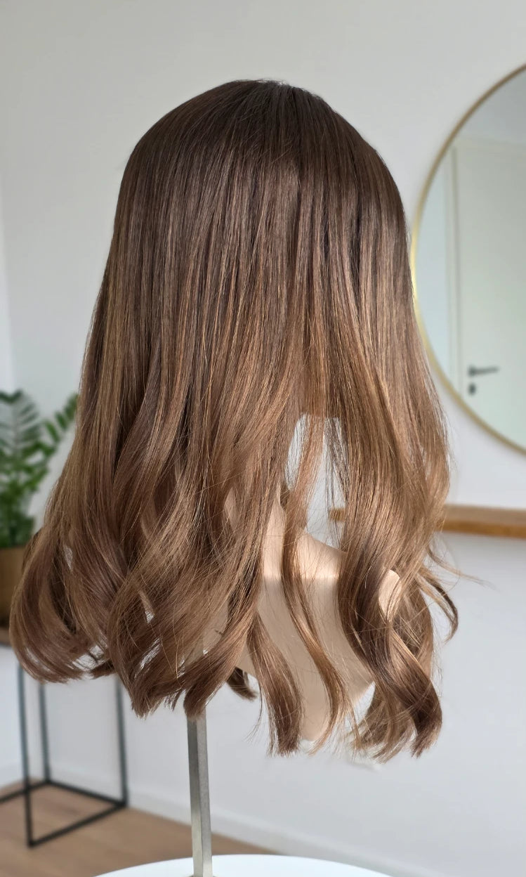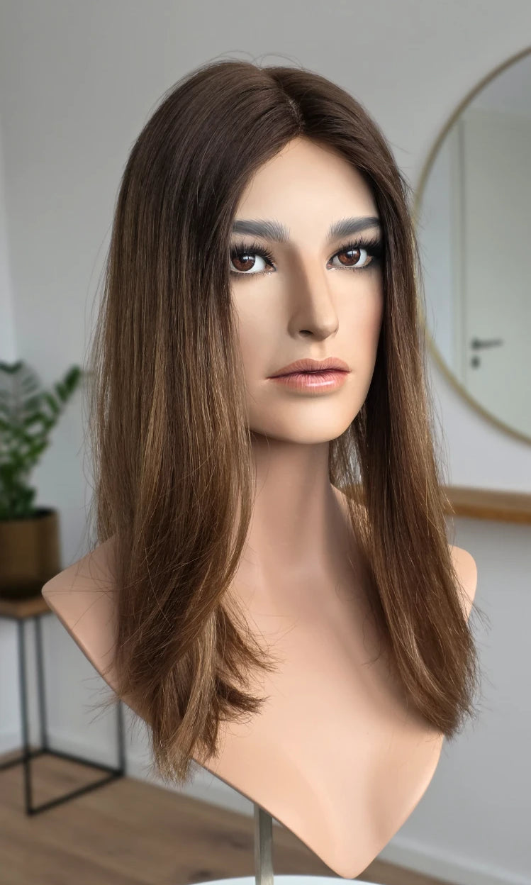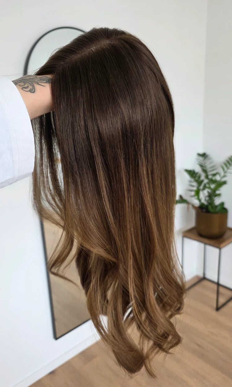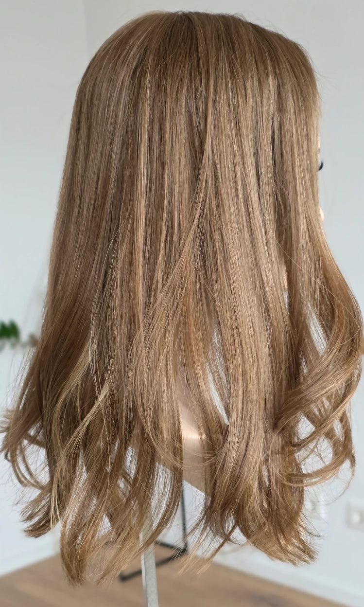 Ein Silk-Topper ist ein hochwertiges Haarteil, das den Bereich am Oberkopf abdeckt – mit dem Ziel, Volumen, Dichte und ein absolut natürliches Erscheinungsbild zu schaffen. Der Name „Silk“ bezieht sich dabei auf die spezielle Seidenlage im Topper, die die Haaransätze wie aus der Kopfhaut wachsend erscheinen lässt.