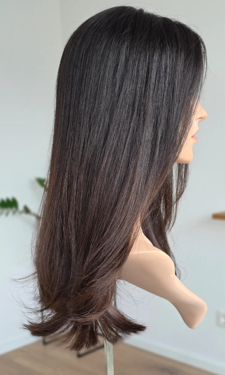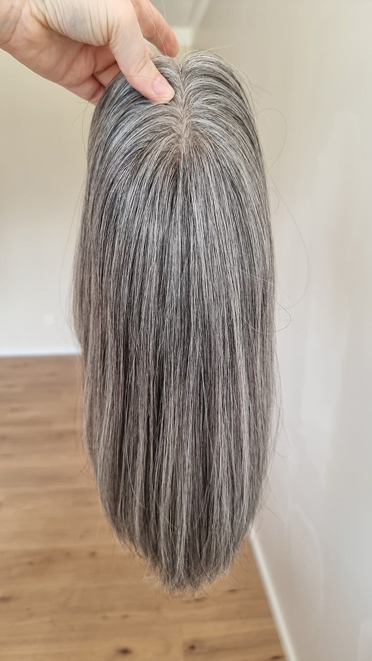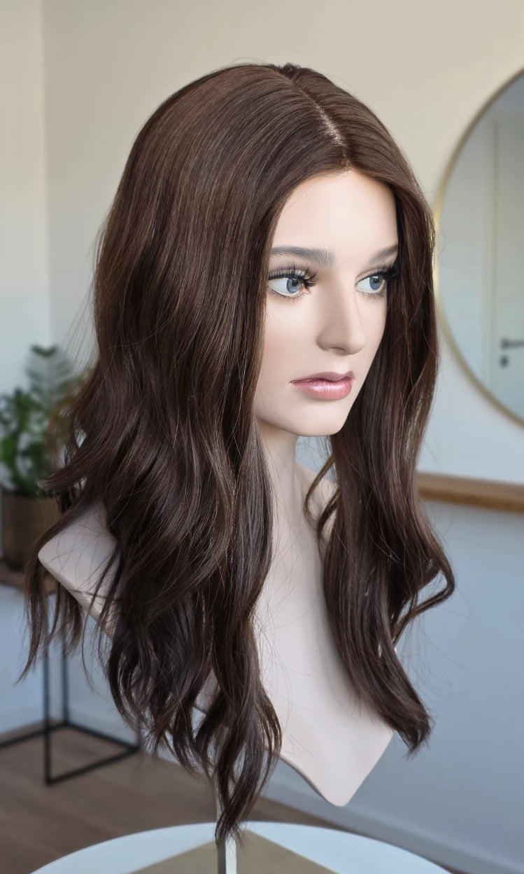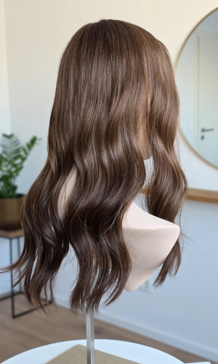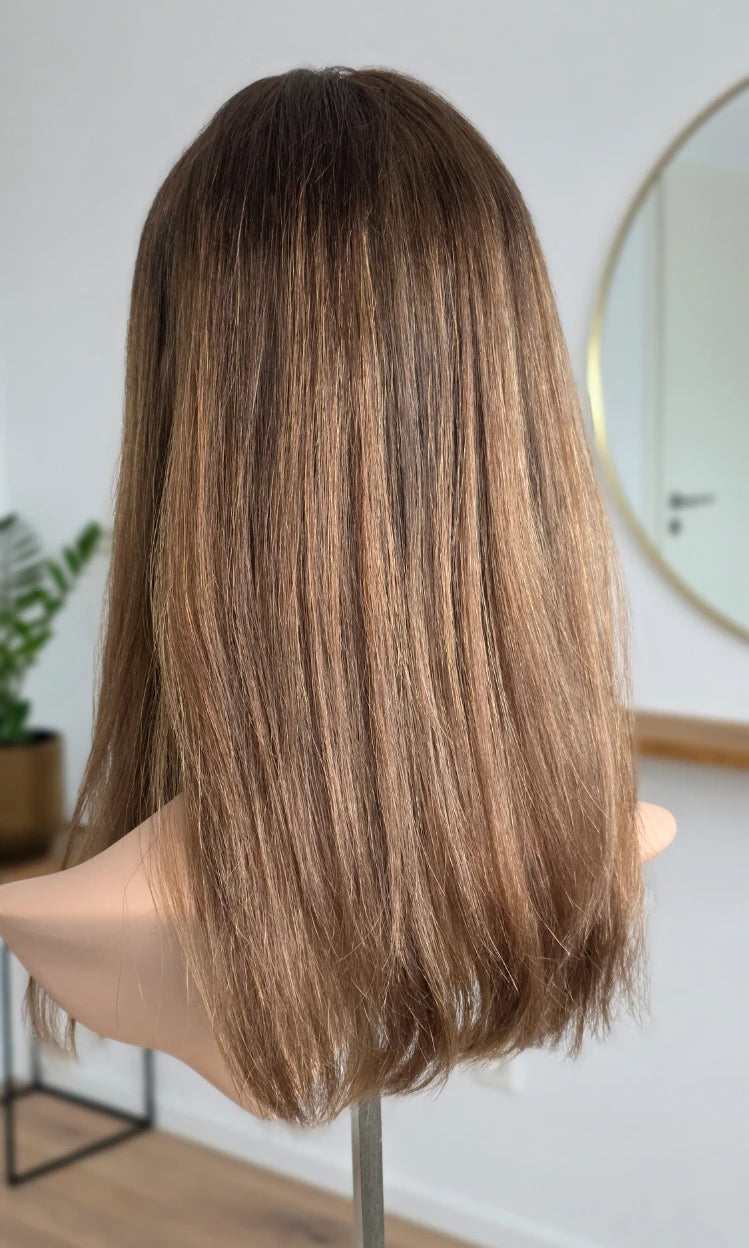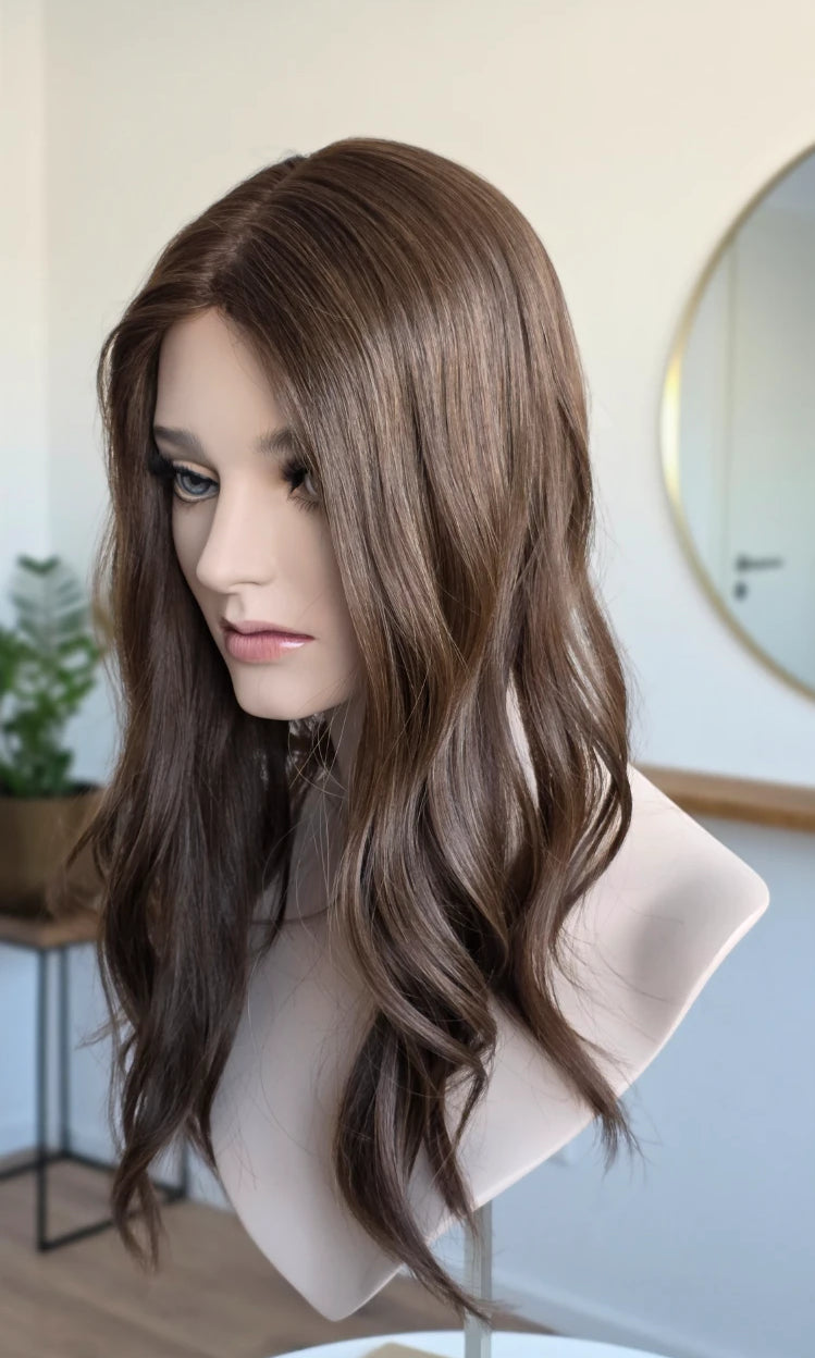 Ein Silk-Topper ist ein hochwertiges Haarteil, das den Bereich am Oberkopf abdeckt – mit dem Ziel, Volumen, Dichte und ein absolut natürliches Erscheinungsbild zu schaffen. Der Name „Silk“ bezieht sich dabei auf die spezielle Seidenlage im Topper, die die Haaransätze wie aus der Kopfhaut wachsend erscheinen lässt.