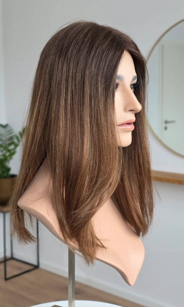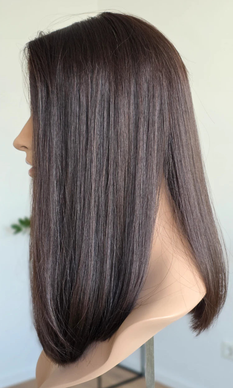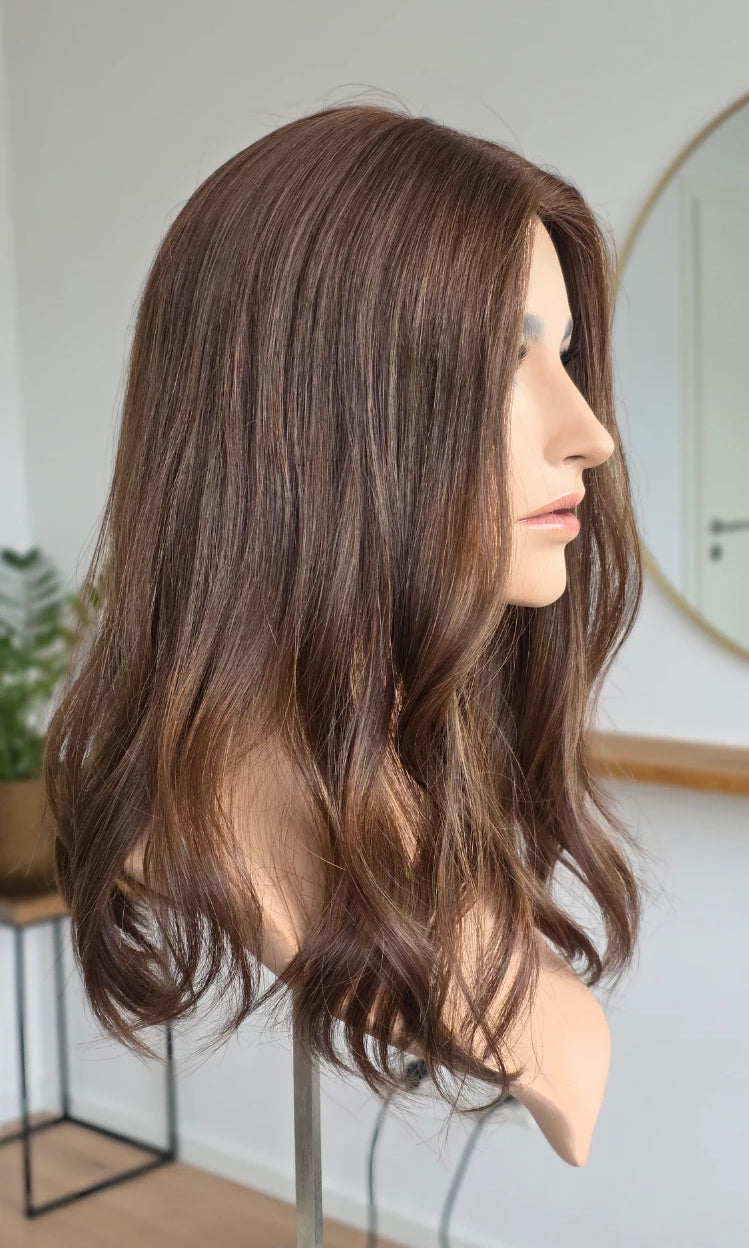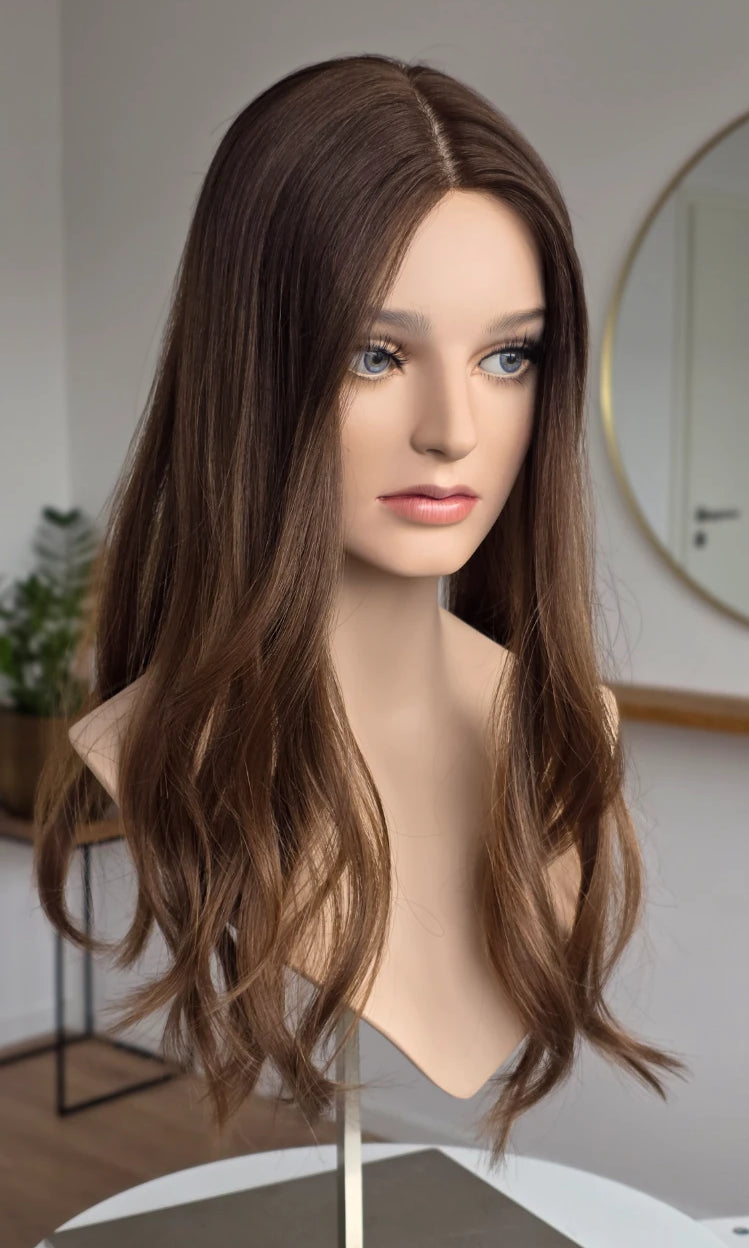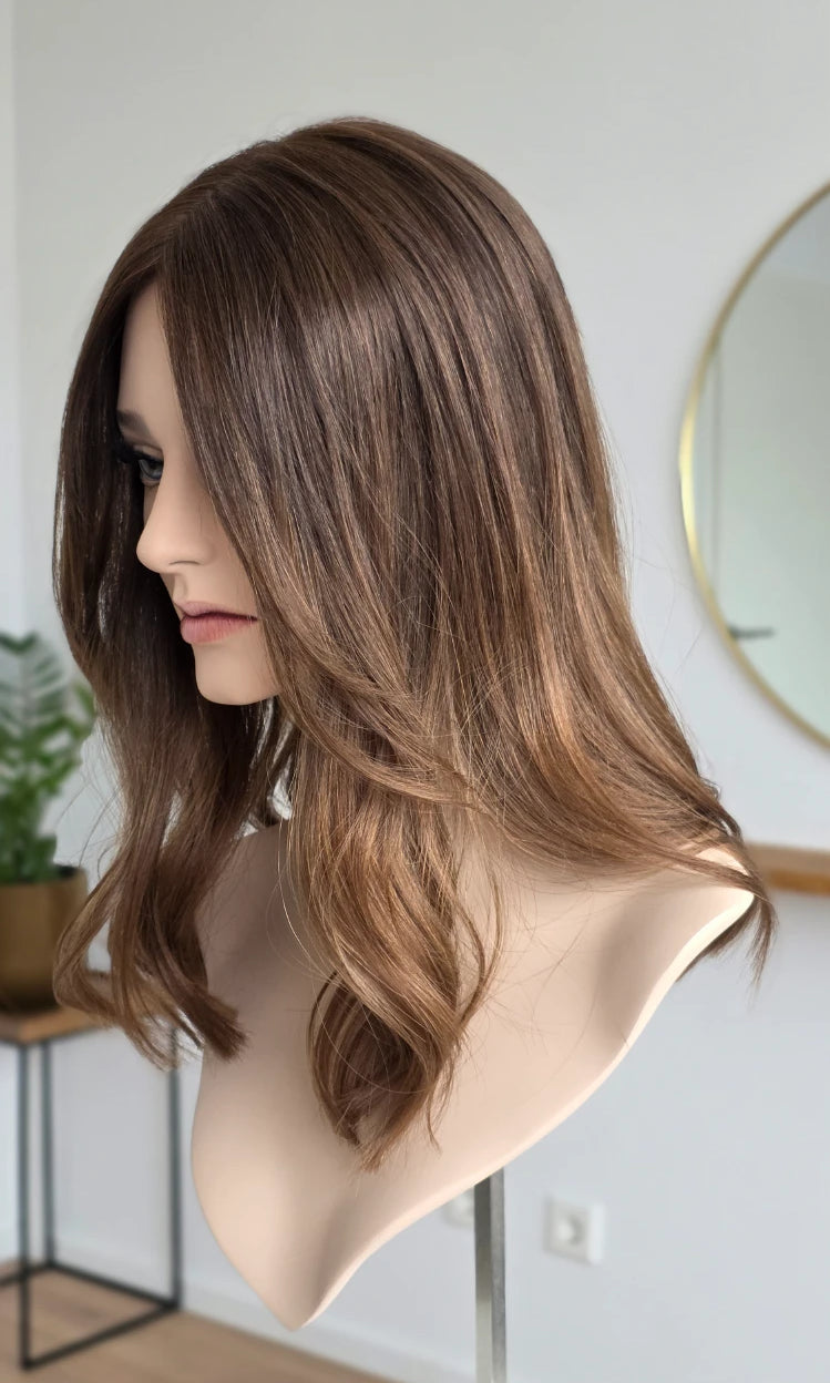 Ein Silk-Topper ist ein hochwertiges Haarteil, das den Bereich am Oberkopf abdeckt – mit dem Ziel, Volumen, Dichte und ein absolut natürliches Erscheinungsbild zu schaffen. Der Name „Silk“ bezieht sich dabei auf die spezielle Seidenlage im Topper, die die Haaransätze wie aus der Kopfhaut wachsend erscheinen lässt.