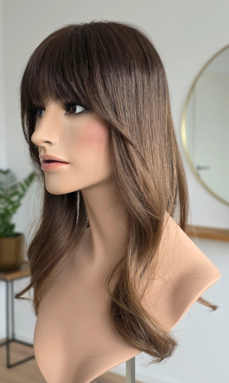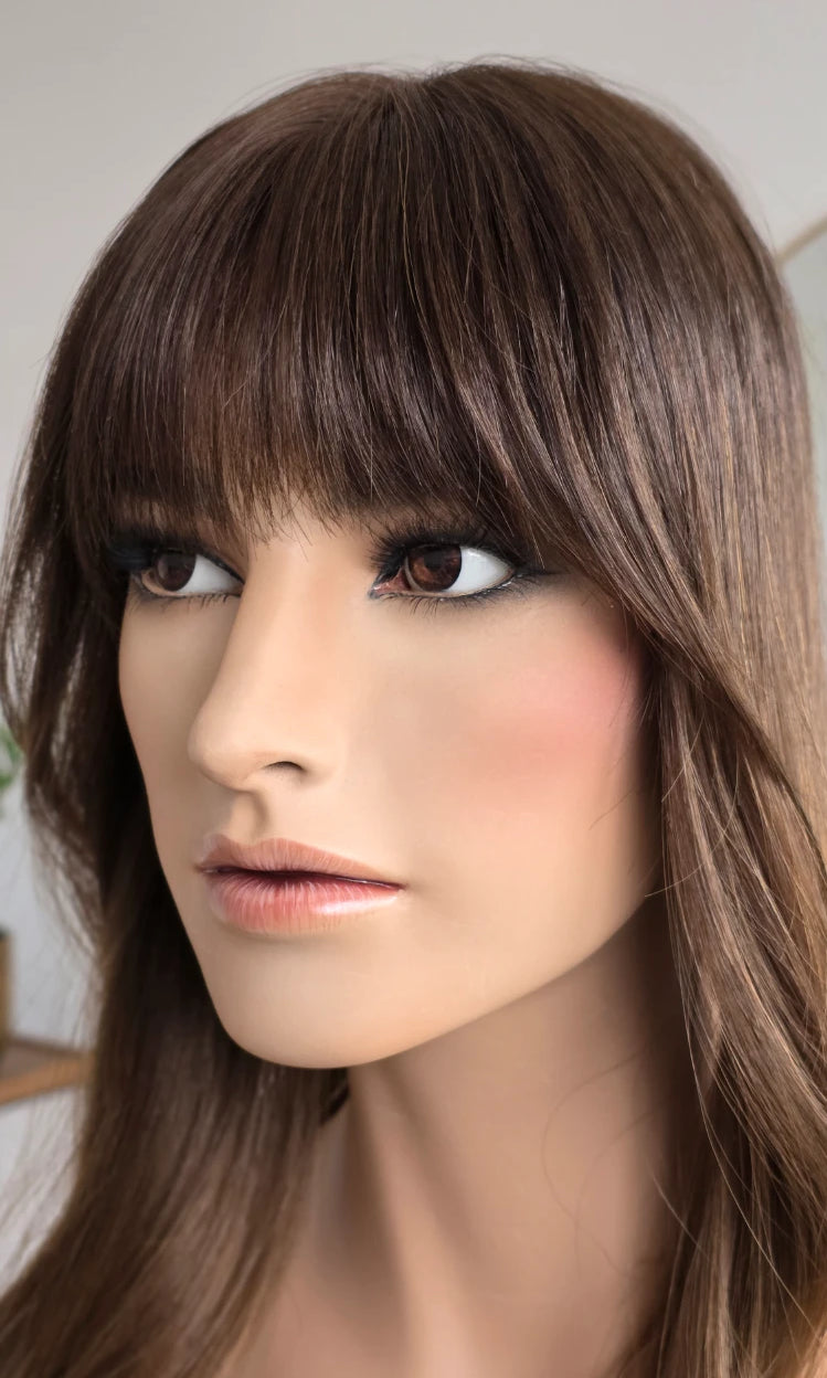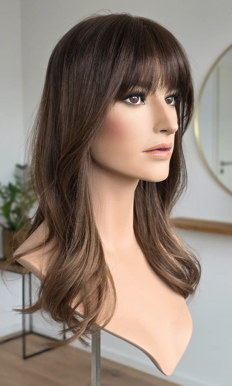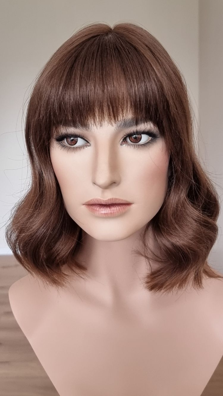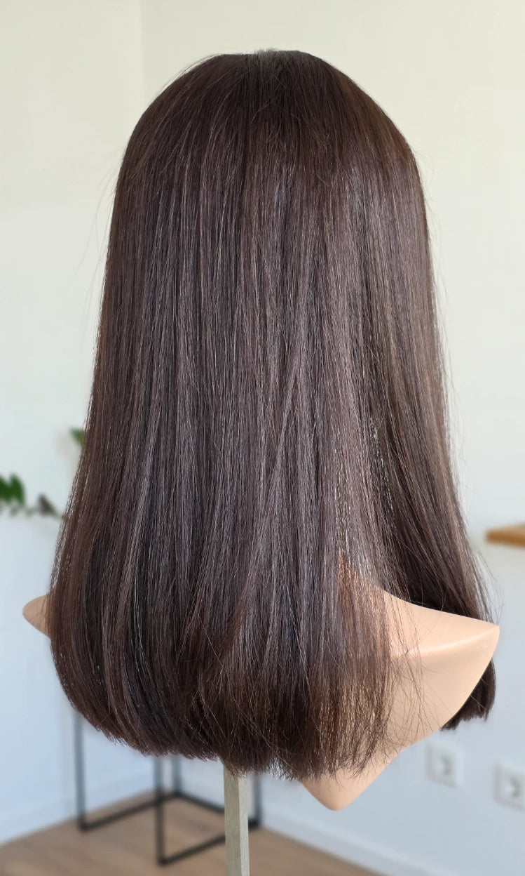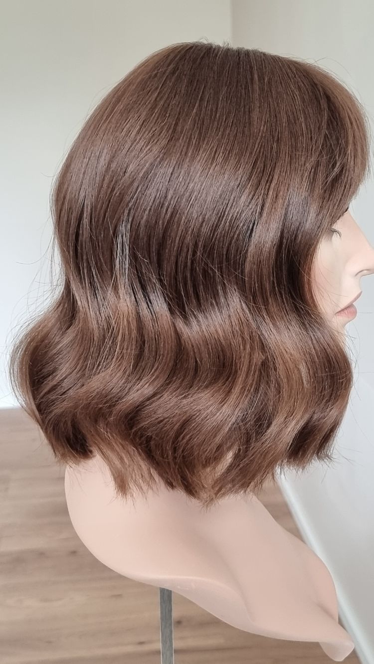 Dein eigenes Haar ist schulterlang oder kürzer? Dann solltest du keinen Topper wählen, der mehr als 5 cm länger ist. Bei dieser Länge vermischen sich das Eigen- und Topperhaar nicht optimal und es kommt zu einer deutlich sichtbaren Stufe. Das beeinträchtigt den Realismus sehr.