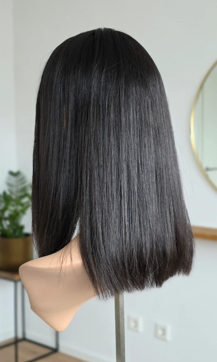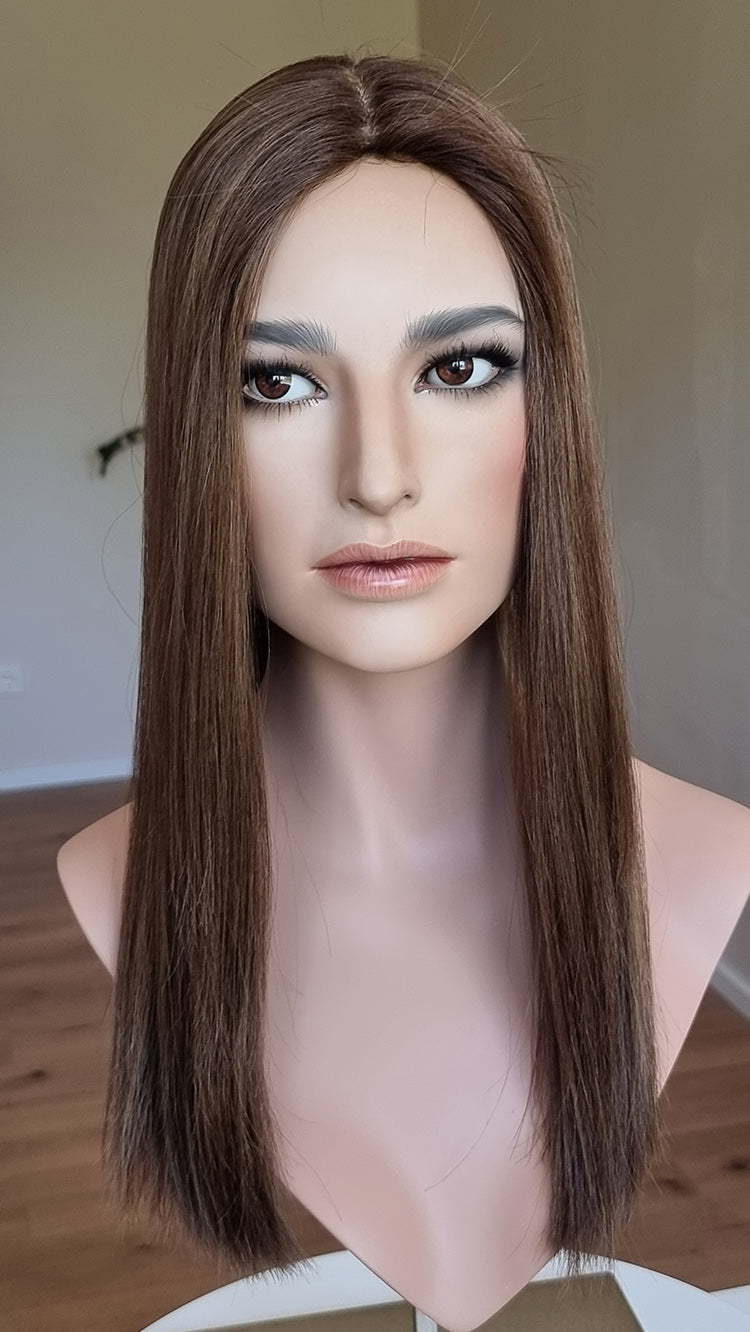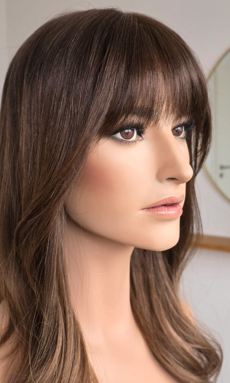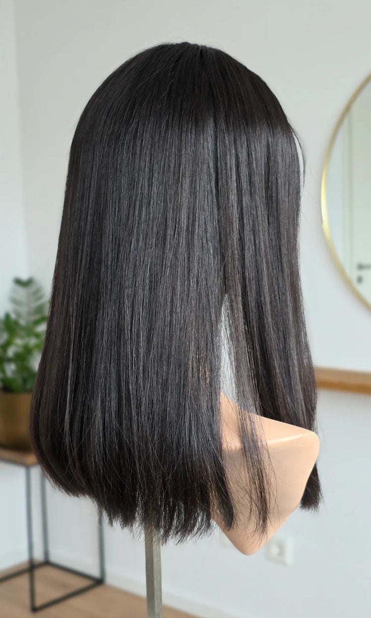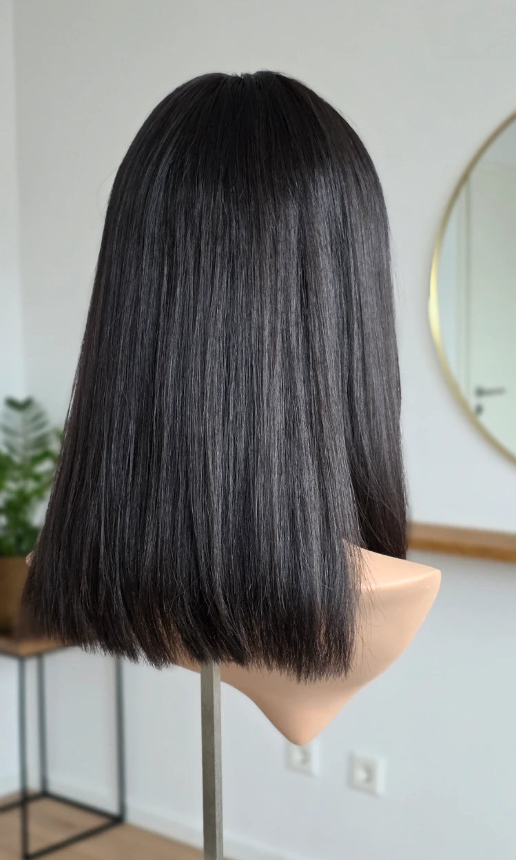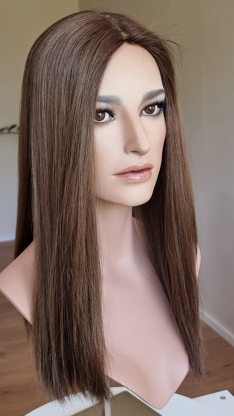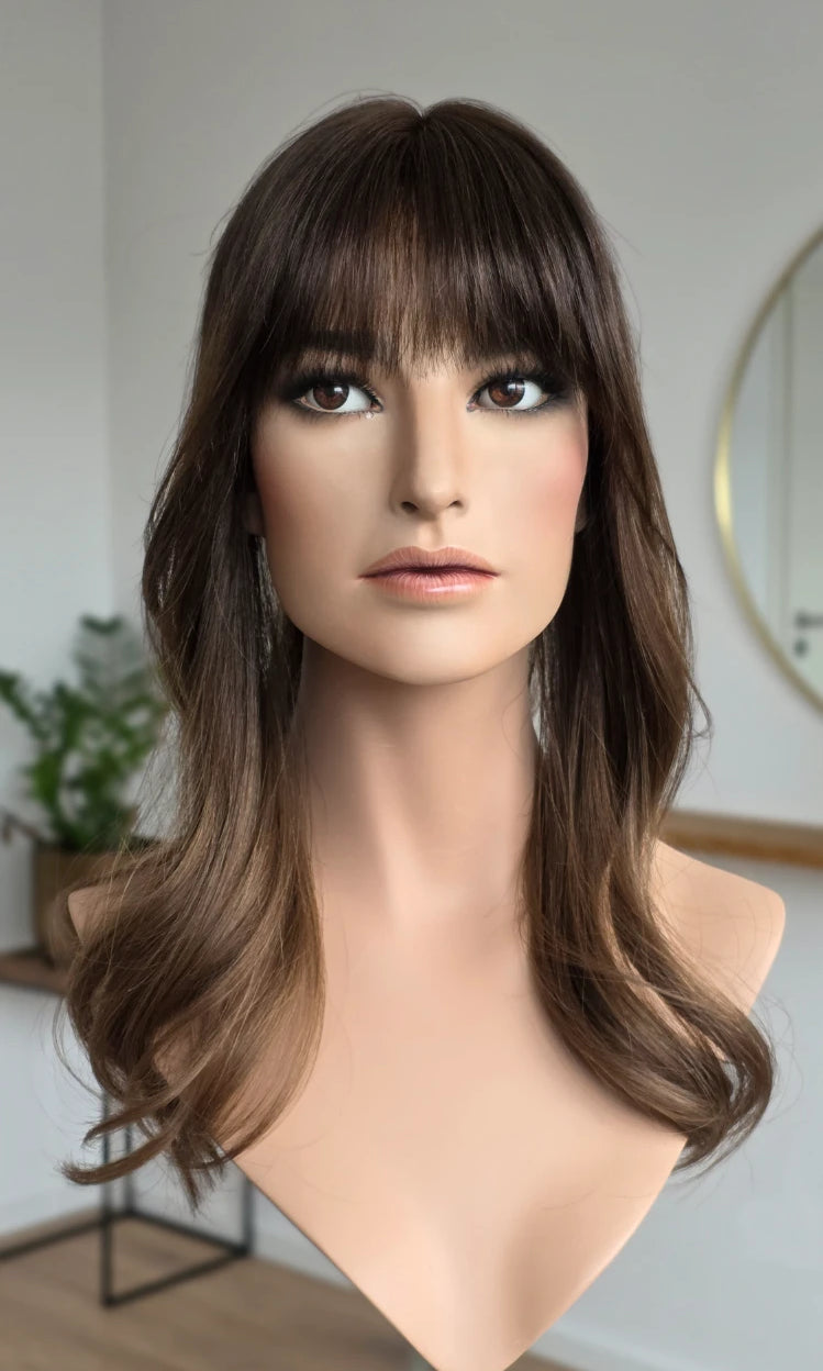 Dein eigenes Haar ist schulterlang oder kürzer? Dann solltest du keinen Topper wählen, der mehr als 5 cm länger ist. Bei dieser Länge vermischen sich das Eigen- und Topperhaar nicht optimal und es kommt zu einer deutlich sichtbaren Stufe. Das beeinträchtigt den Realismus sehr.