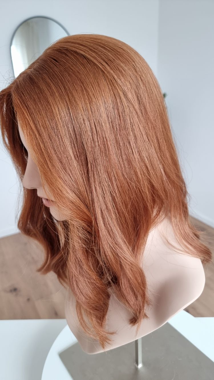 Der Scheitelbereich besteht aus einem sogenannten Silktop – die natürlichste Montur, die aktuell auf dem Markt erhältlich ist. Diese Art der Konstruktion erweckt den Anschein, als wüchsen die Haare direkt aus der Kopfhaut. Selbst aus nächster Nähe wird niemand dieses Haarteil als Zweithaar erkennen.