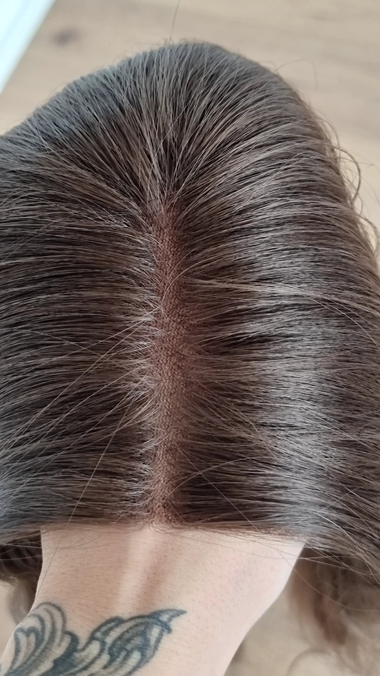 Ein Crown-Topper ist ein Haarteil mit sehr dünner Lace-Montur, das besonders für Frauen geeignet ist, die sich eine Lösung mit geringer Haardichte wünschen.
