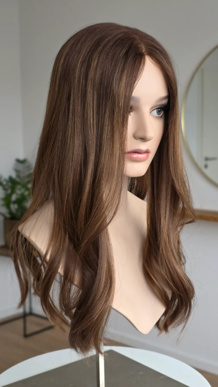 Diese Art von Haarteil ist besonders bei Frauen beliebt, die unter diffusem Haarausfall, erblich bedingtem Haarausfall oder einfach unter einem ausgedünnten Scheitel leiden.