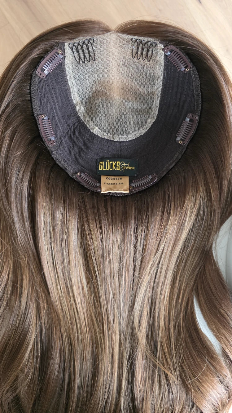 Unsere Crown-Topper sind besonders leicht durch ihre besondere Lace-Basis, welche die Kopfhaut atmen lässt – ideal für den Alltag.