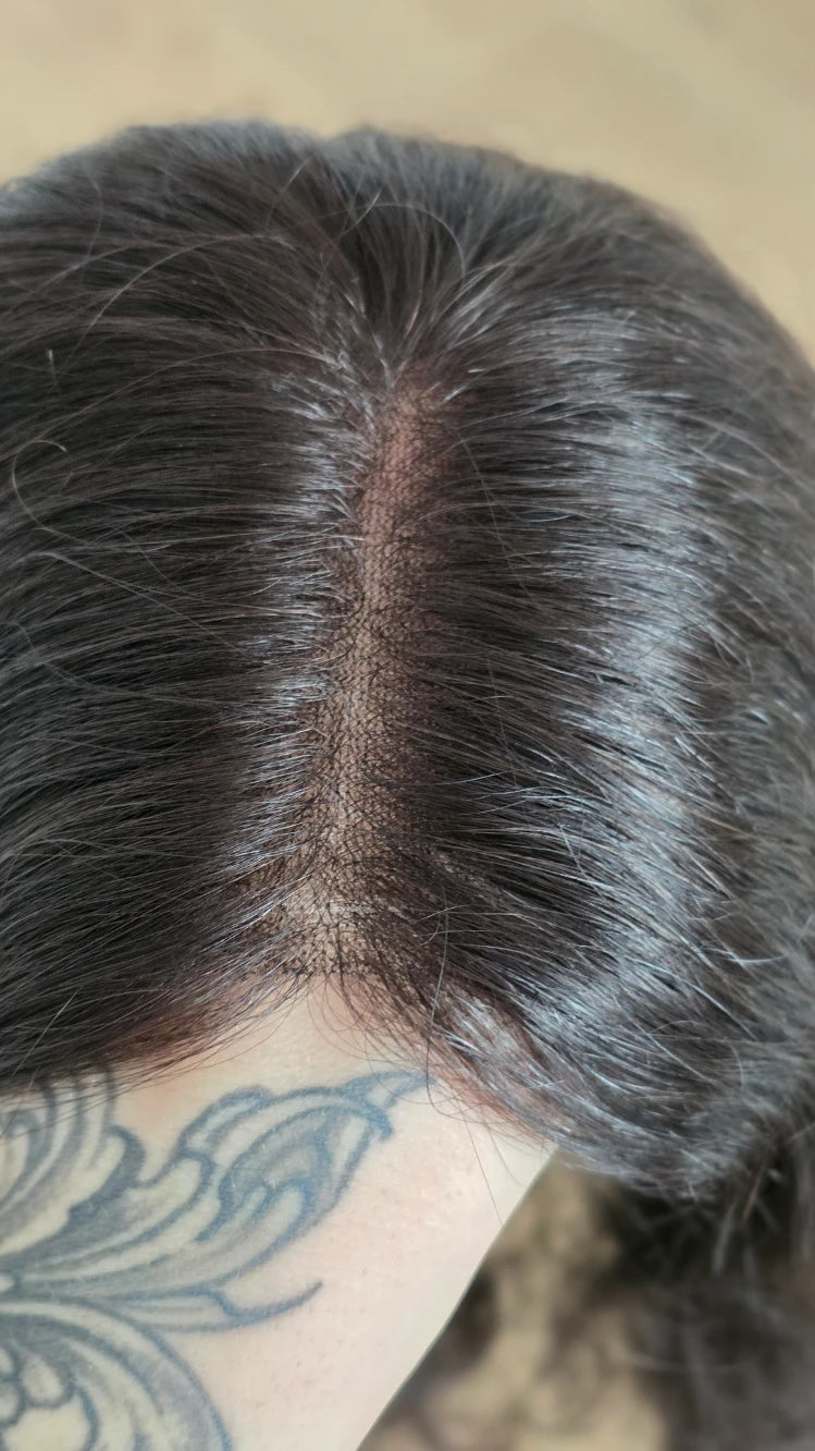 Ein Crown-Topper ist ein Haarteil mit sehr dünner Lace-Montur, das besonders für Frauen geeignet ist, die sich eine Lösung mit geringer Haardichte wünschen.