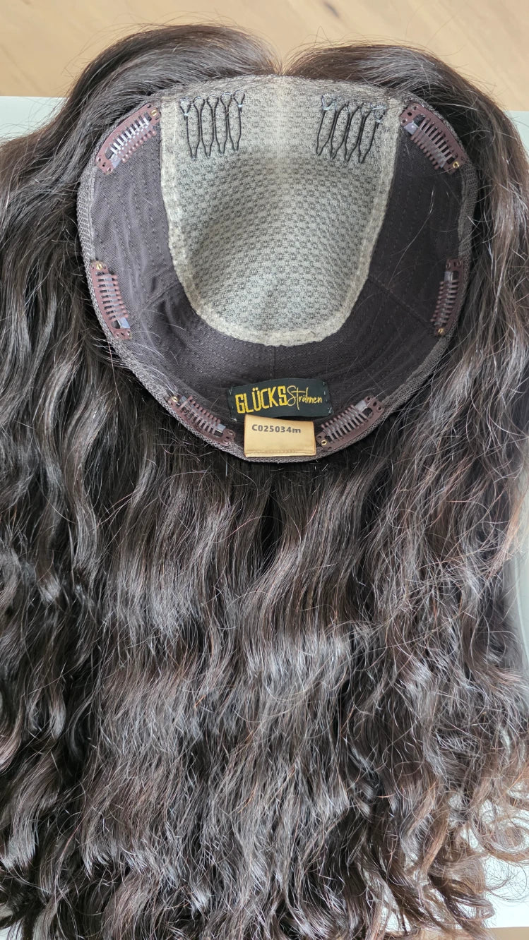 Der Crown-Topper ist extrem flach und liegt sehr dicht am eigenen Kopf an - das sorgt für ein sehr natürliches Aussehen ohne unerwünschtes Volumen am Oberkopf,