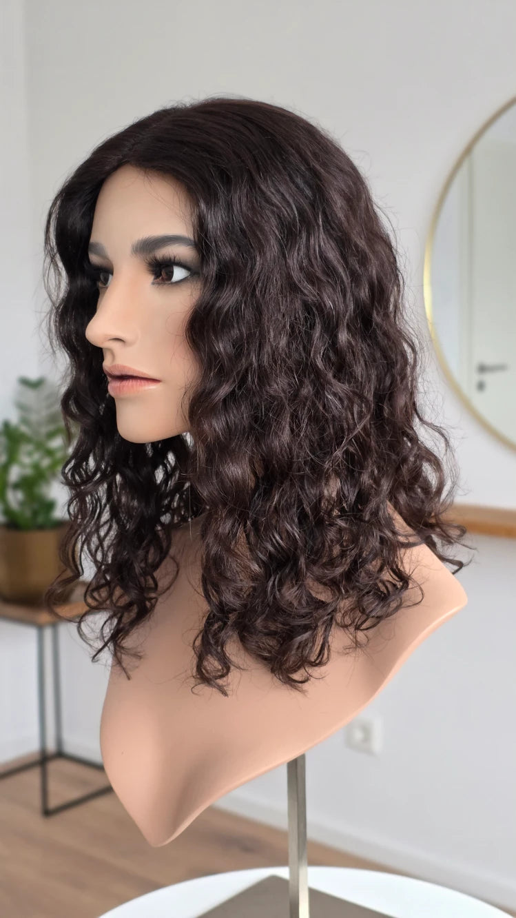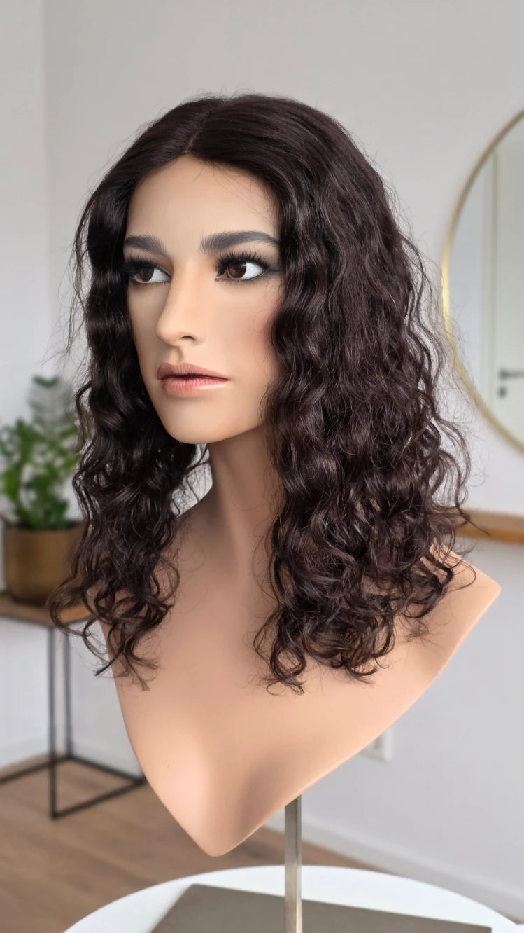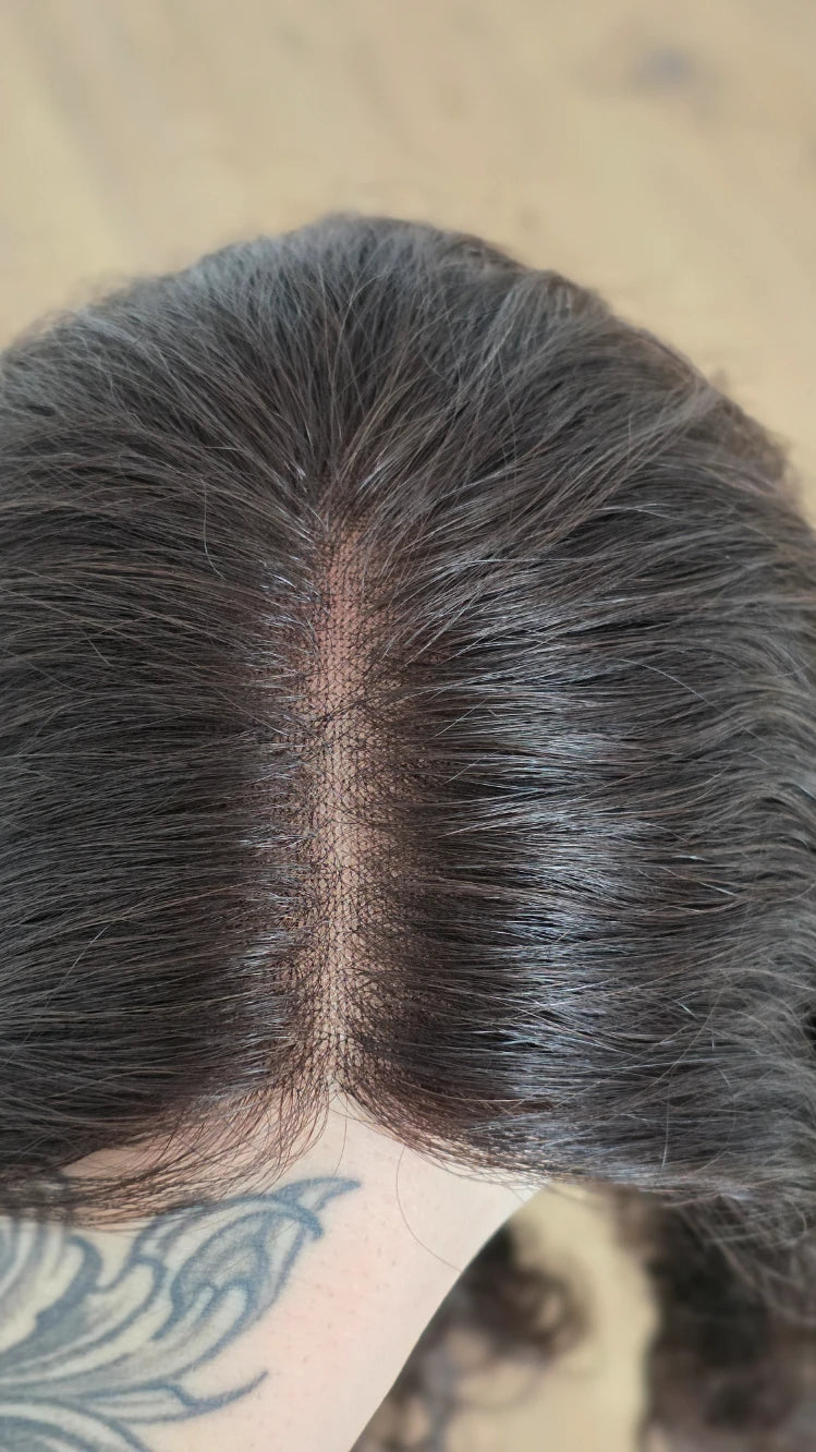 Ein Crown-Topper ist ein Haarteil mit sehr dünner Lace-Montur, das besonders für Frauen geeignet ist, die sich eine Lösung mit geringer Haardichte wünschen.