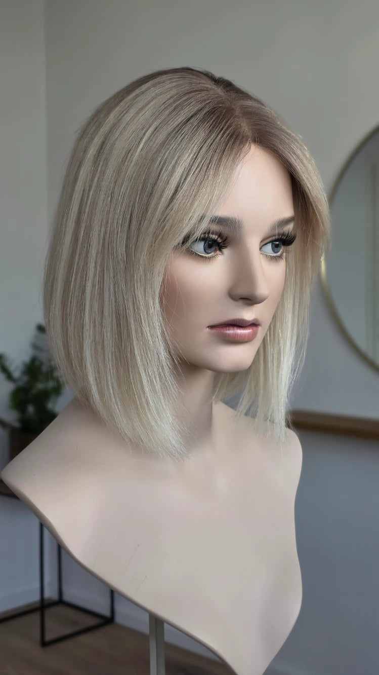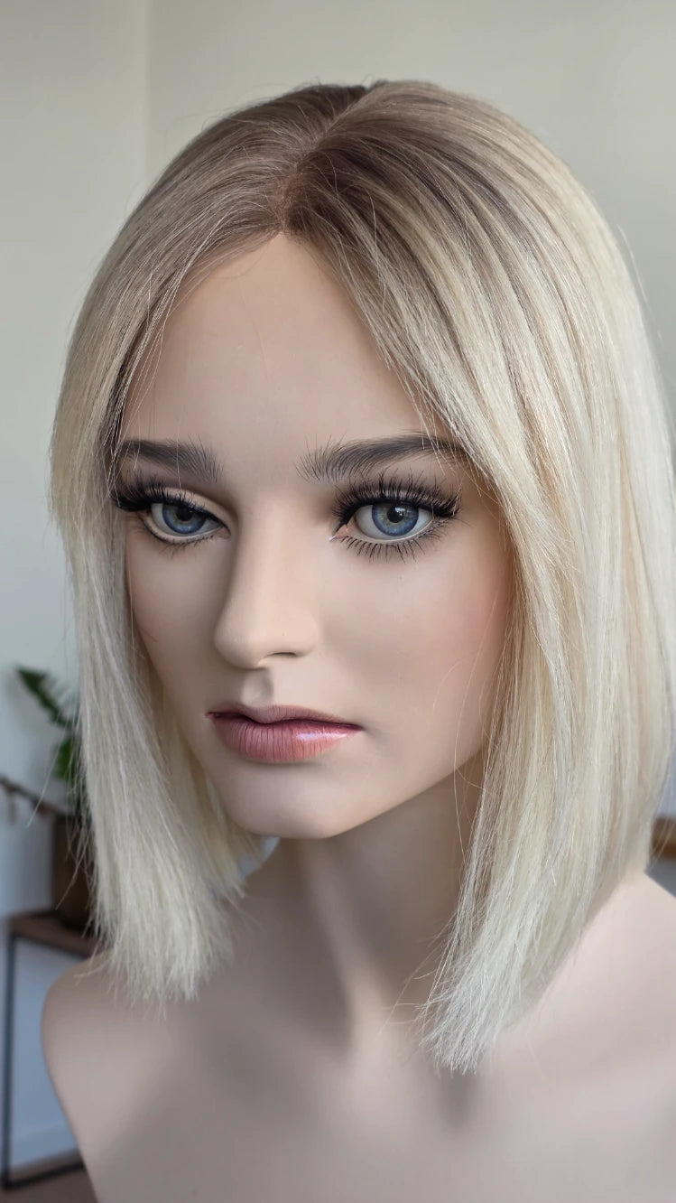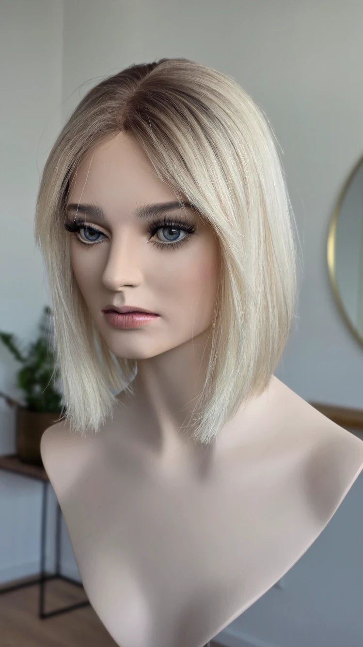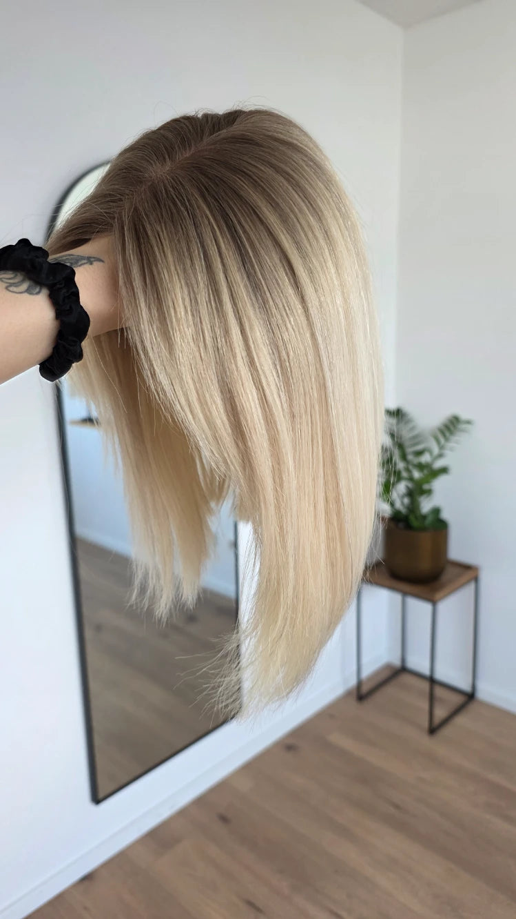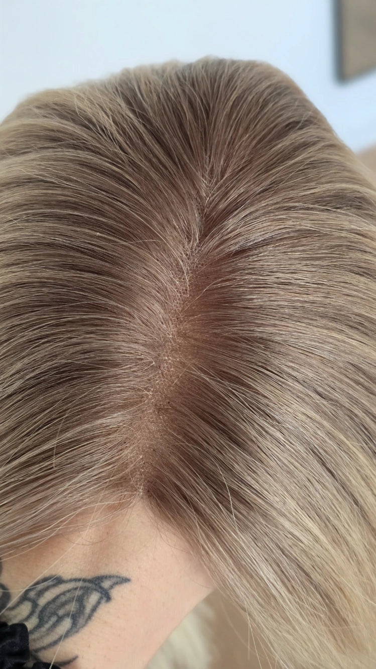 Ein Crown-Topper ist ein Haarteil mit sehr dünner Lace-Montur, das besonders für Frauen geeignet ist, die sich eine Lösung mit geringer Haardichte wünschen.