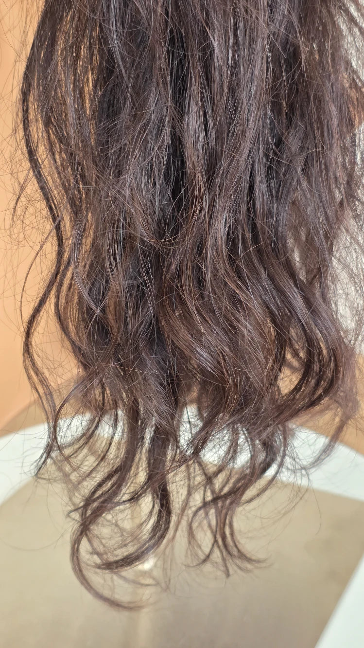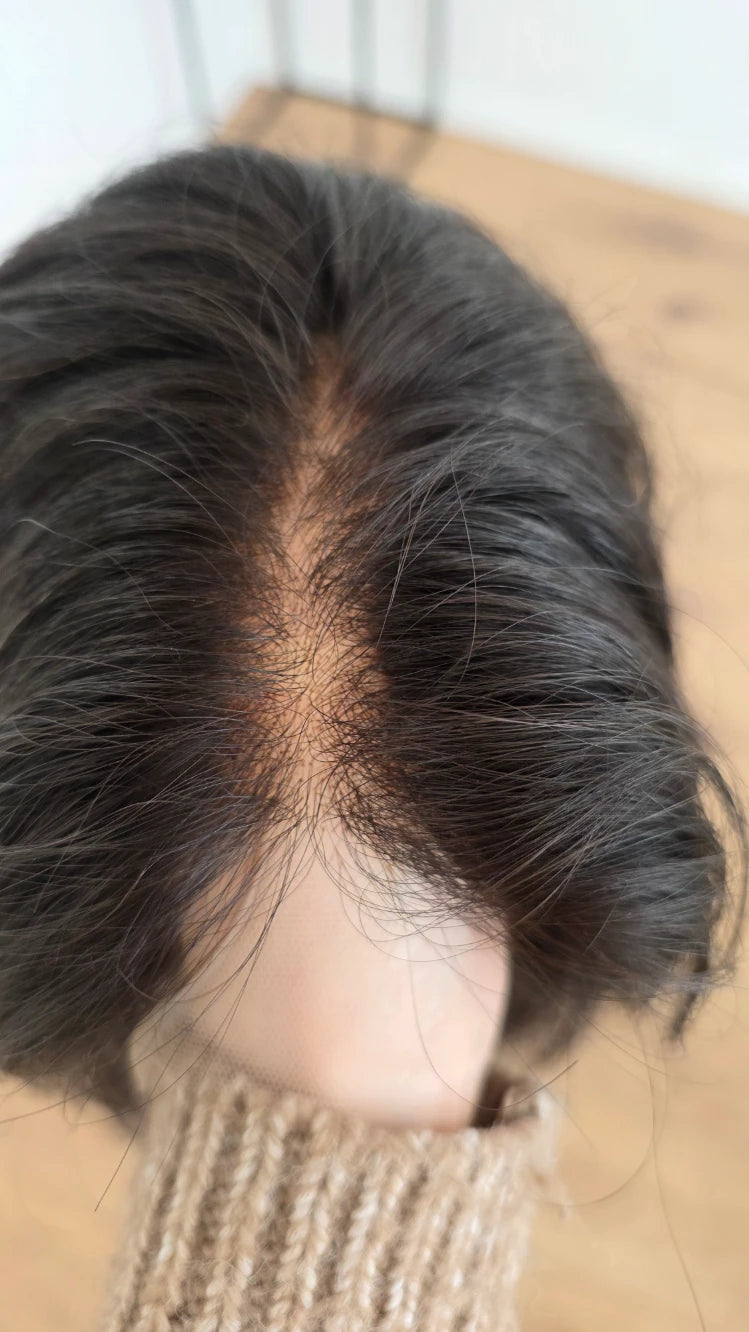 Die Knoten sind gebleicht, können allerdings nur bis zu einem gewissen Punkt blondiert werden, ohne die Integrität der Perücke zu gefährden. Da Haar ein Naturprodukt ist und somit natürlichen Schwankungen unterliegt, lassen sich manche Knoten besser aufhellen als andere. Sollten die Knoten nicht ganz aufgehellt werden können, kannst du sie mit hellem Puder oder unserem Perückenstift kaschieren.