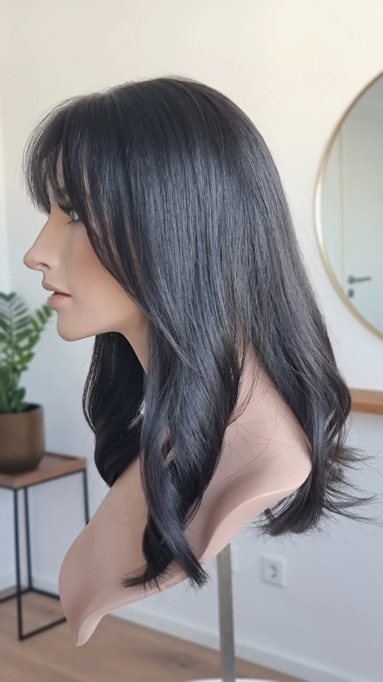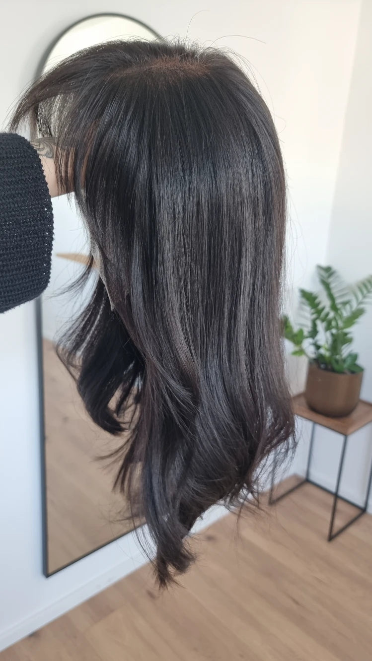 - Haarlänge stufig 40-45 cm vom Scheitel bis zu den Spitzen