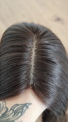 Um sicherzugehen, dass die Haarlänge für dich passend ist, nimm bitte ein flexibles Maßband und miss vom Mittelscheitel seitlich am Kopf herunter bis zu den Spitzen. Idealerweise ist der Topper dann 2 cm länger als dein eigenes Haar.